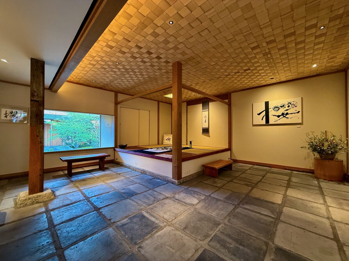 ギャラリーの建築も天井の網代編みや、お寺の廃材を再利用したという柱など数奇屋風で素敵…!Bar 薫とともに、この改修を手掛けたのは京都の吉原組一級建築士事務所。ギャラリーでは2026年4月19日まで書家 名方亜希さんの個展が開催中。期間中、お近くに行かれた際には立ち寄ってみて。