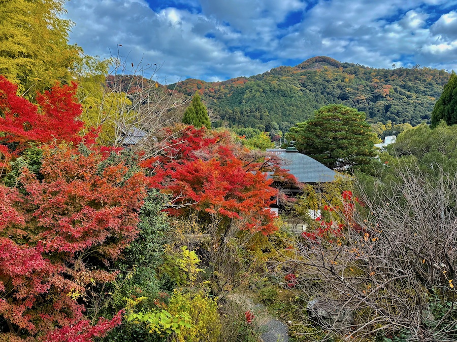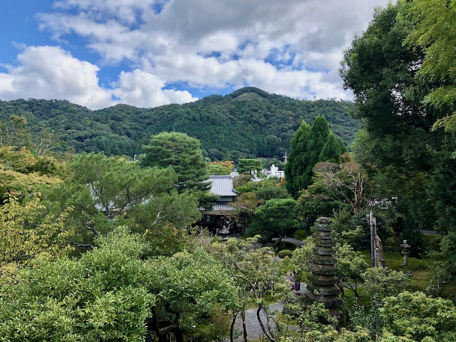 そしてこの庭園の一番の絶景と言えるのが大文字山の借景!京都の夏の風物詩「五山送り火」の代表的な「大文字」を、庭園の西側(持仏堂周辺)や記念館の2階部分から特にきれいに眺めることができます。「東山を借景とした庭園」はこの界隈には数多くありますが、「大文字」がこんな間近に見られる庭園はここだけ。