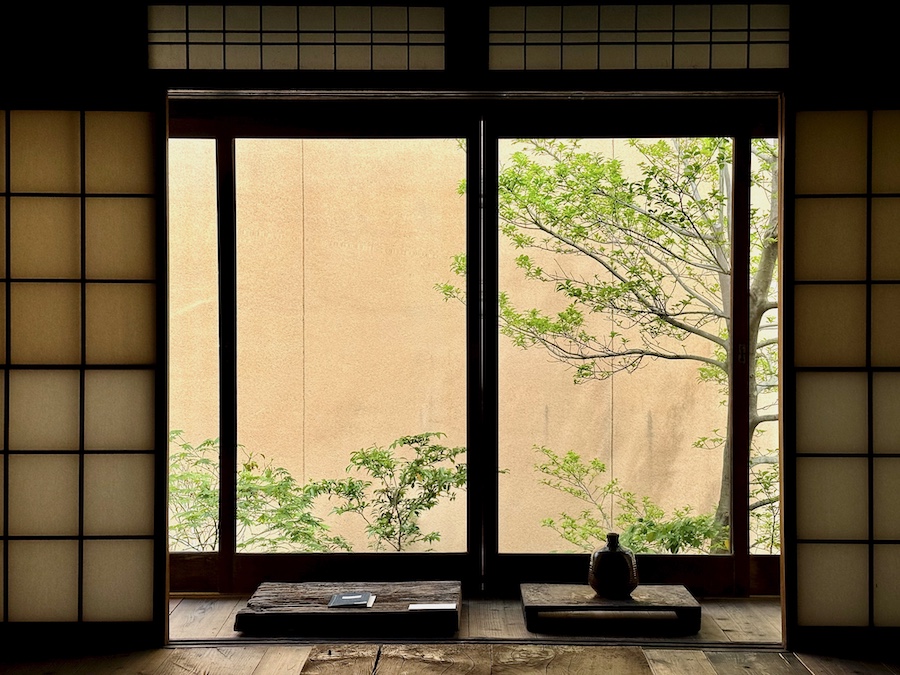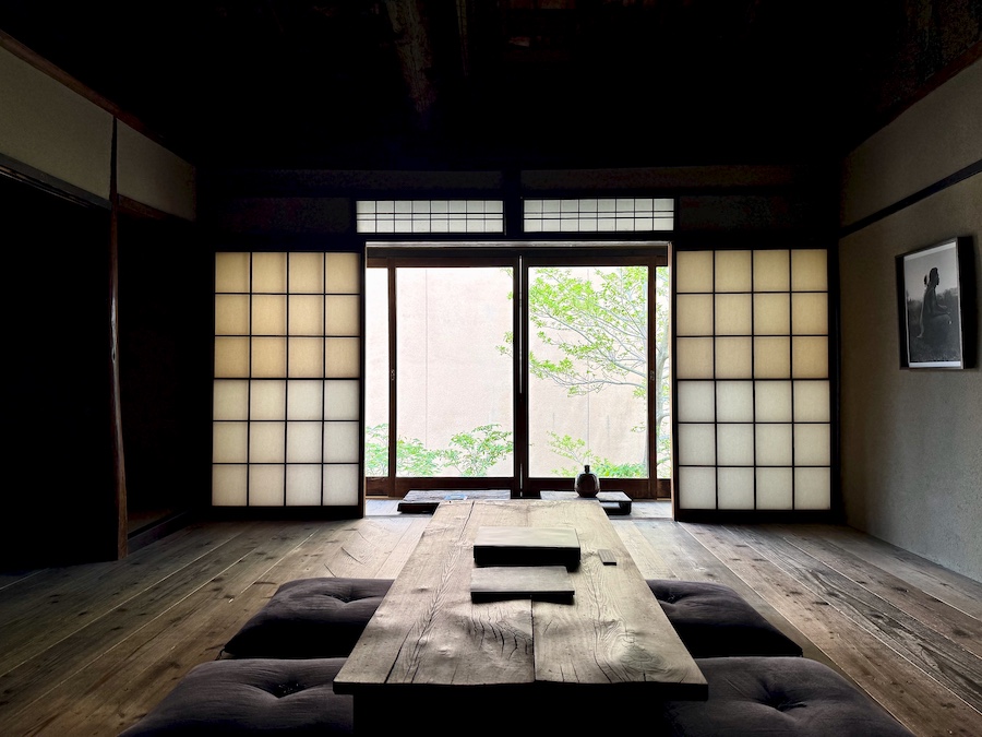 建築(改修)を手がけたのは、数多くの京町家/古民家など和風建築の再生/リノベーションを手掛けている事でも知られる魚谷繁礼建築研究所。コンセプトには《元あった姿に戻すように改装》とあり、決して現代風・華美になっている訳ではないのですが、修繕したと思しき箇所が網代編みだったり、1階のシンプルで大きい床の間、2階の明るく開放的な空間…木材を自然の姿に見せている所…などなどめちゃくちゃカッコいい。(TOTO間での個展も見たりしていたのに、実は魚谷さんの作品を投稿するのは初…)