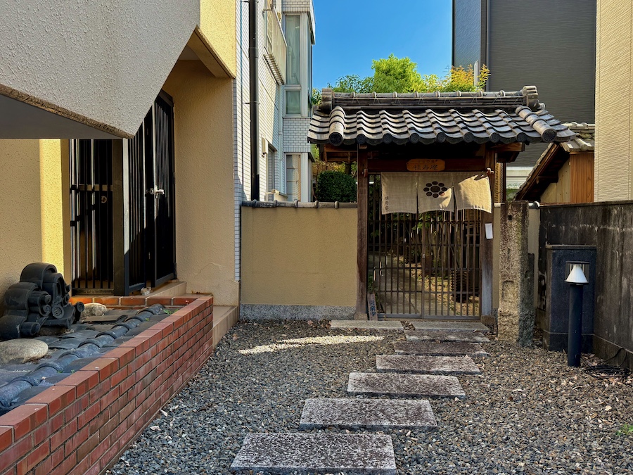 ここで紹介するカフェ「桂寿庵」は公開屋敷や旧邸の多いエリアからはやや東側、『名古屋陶磁器会館』と『徳川園』の間に位置します。事前に写真で見ていた、瓦葺の和風の門の雰囲気からいわゆる一般的な古民家カフェ…かと思いきや。地図通りに訪れて現れたのはごく普通の大きなマンション。
