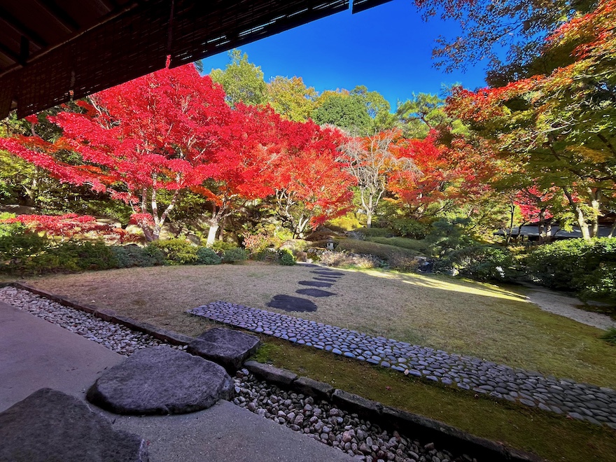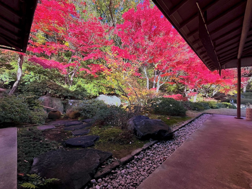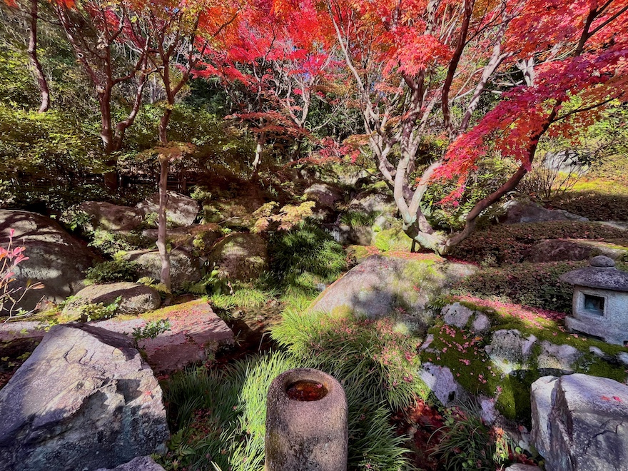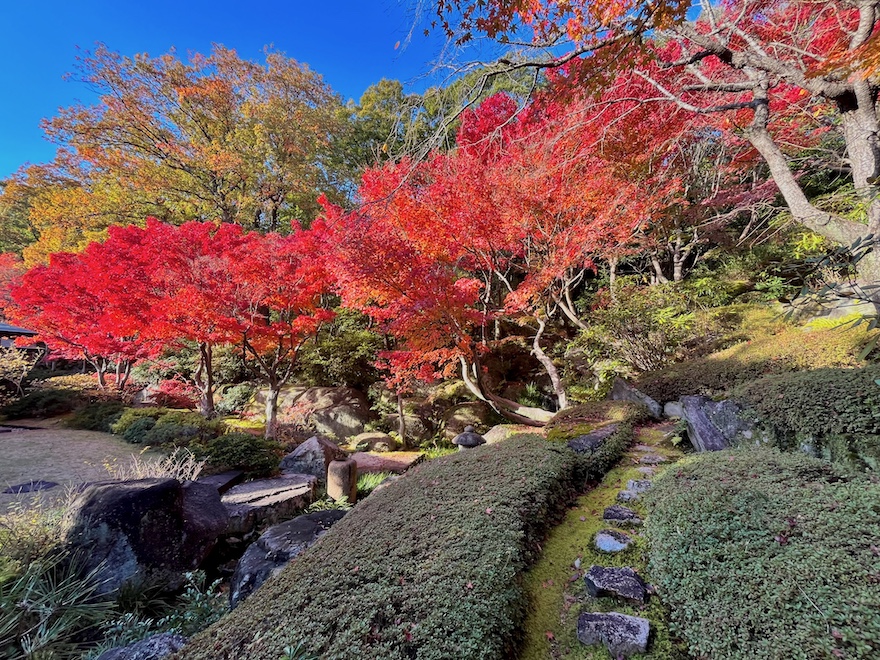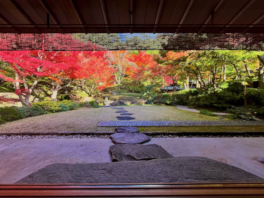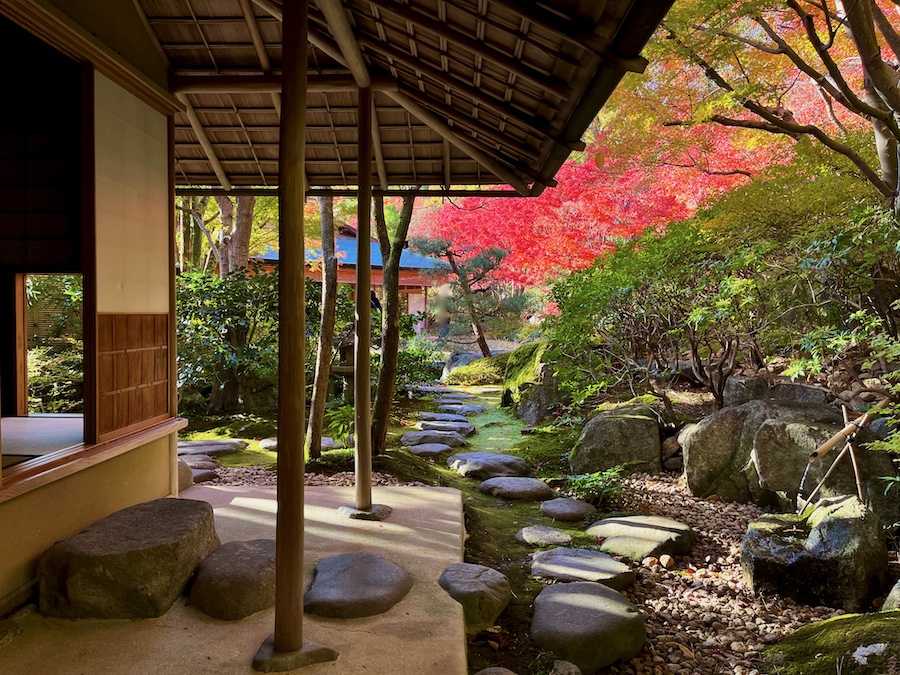 今回訪れた秋には紅葉が、冬にはツバキ、春には枝垂れ桜やツツジ、そして梅雨時には苔が庭園を彩ります。来場者の多い春・秋の週末/祝日には庭園を眺めながらの呈茶営業も。騒がしくない空間でこの美しい庭園が眺められる――もしかしたら京都より癒やされるかも…?