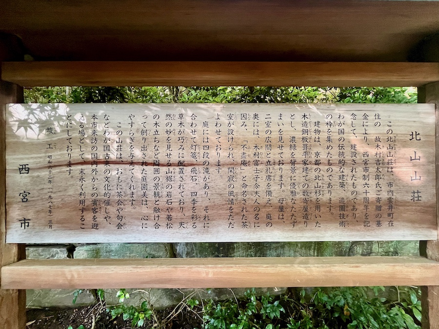 そんな植物園の一角にある和風建築が「北山山荘」。植物園開園の5年後の1987年(昭和62年)に西宮市内在住の木村吉太郎さん(大阪『木村金属』社創業者?黄綬褒章・瑞宝章受章者)の寄付によって建立。