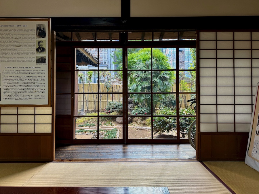 移築に伴って作庭されたこのお庭は決して広いお庭ではありませんが(※屋内から眺めるのみ)、松江の旧居のお庭とどこか似た雰囲気も感じられる&温暖な熊本ならではの植栽の違いも楽しい。九州・熊本旅行の際にはぜひ立ち寄ってみて。