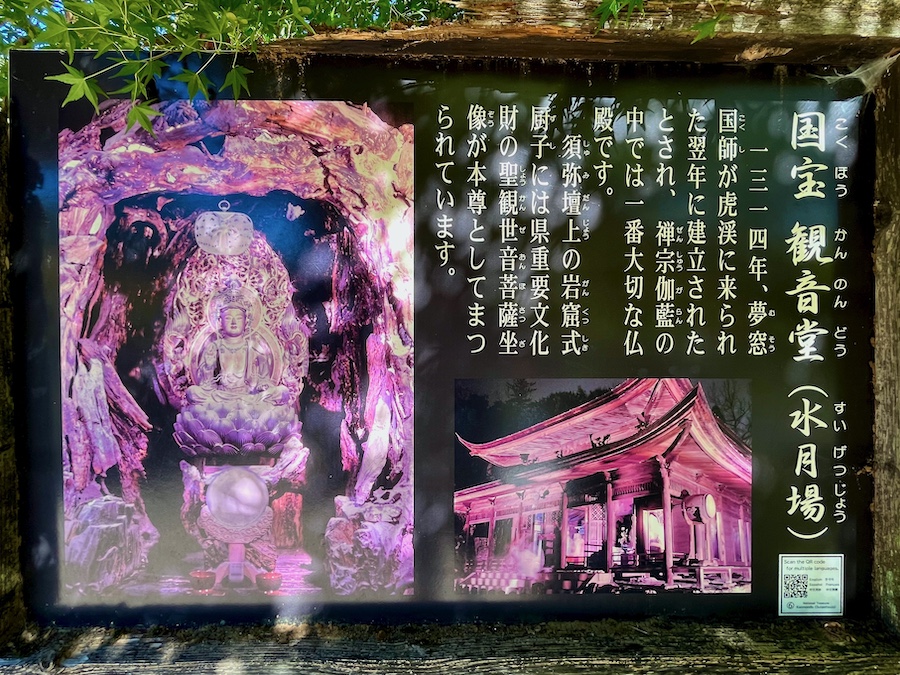 その歴史について。伊勢国に生まれ甲斐国で育ち、京都、鎌倉、甲斐国で修行を重ねた夢窓疎石。そんな疎石が鎌倉修行時に親交のあった御家人で美濃国の武将・土岐頼貞の招きを受け、1313年(正和2年)39歳の時に多治見を訪れ発見したのが土岐川の渓流沿いのこの地。その景色が中国の廬山/虎渓に似ているという理由から“虎渓山”(古渓)の山号が名付けられ古庵という庵を結び、翌年に今日まで残る国宝「観音堂」が建立されました。
