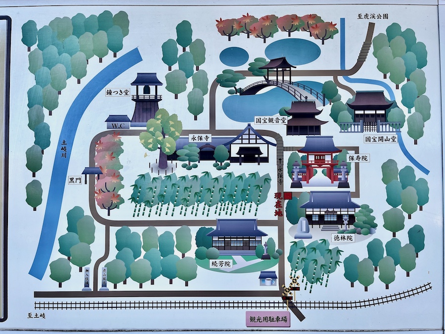 「虎渓山 永保寺」(こけいざん えいほうじ)は岐阜県多治見市にある国宝寺院。鎌倉時代/南北朝時代より残る観音堂・開山堂が国宝。また京都の世界遺産『天龍寺』、『西芳寺』の庭園も手がけた鎌倉〜室町時代を代表する禅僧・夢窓疎石(夢窓国師)の作庭と伝わる庭園も国指定文化財(国指定名勝)。前述の2つの京都の名庭園にも劣らない、建築と自然との調和が美しい庭園を鑑賞することができます。