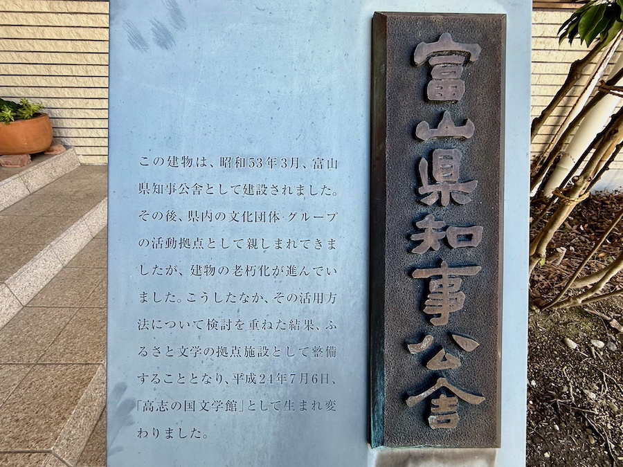 かつての富山の中心、『富山城址公園』からは徒歩5分程。『旧富山県知事公館』の名前の通り、元は富山県知事公館として1978年(昭和53年)として建築された昭和のモダン建築に加えて、知事公館の廃止⇒文学館の開館にあたり建設された現代建築の2棟により構成される高志の国文学館。開館後は中部建築賞、BCS賞なども受賞、『TOYAMAキラリ』と並んで富山の新たな名建築…。