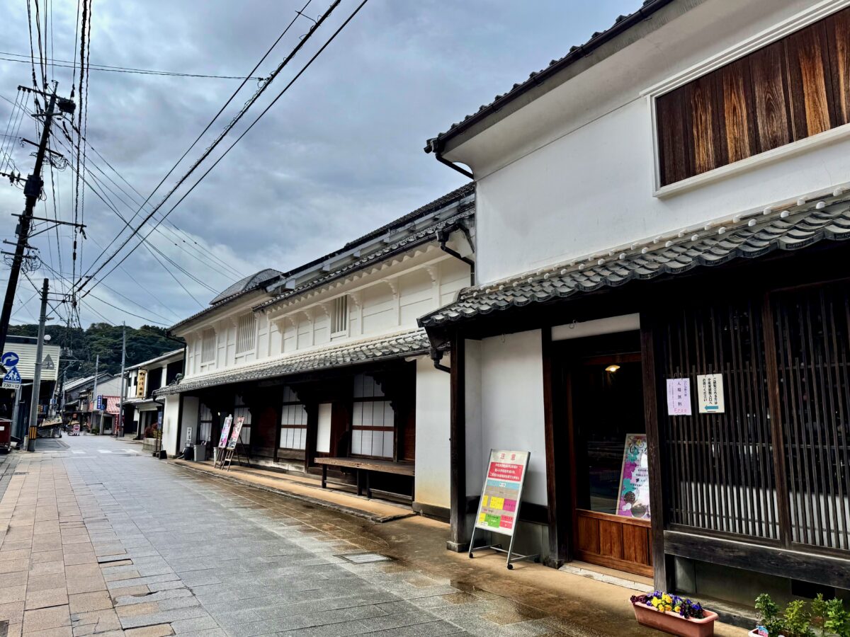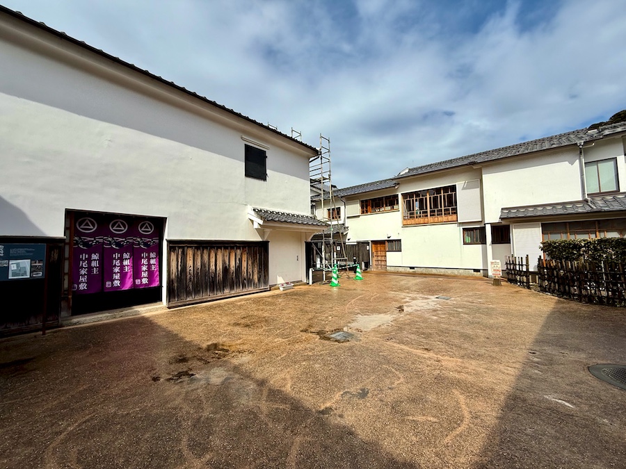 中心市街地(唐津城下)〜名護屋城の間に位置するのが「呼子のイカ」や“日本三大朝市”と称される「呼子朝市」が知られる呼子の港町。店先に並べられた新鮮な魚介類を眺めつつレトロな町並みの中を進んでいくと、ひときわ豪壮で間口の広い、白漆喰の壁も印象的な大型な町家建築「鯨組主中尾家屋敷」が現れます。