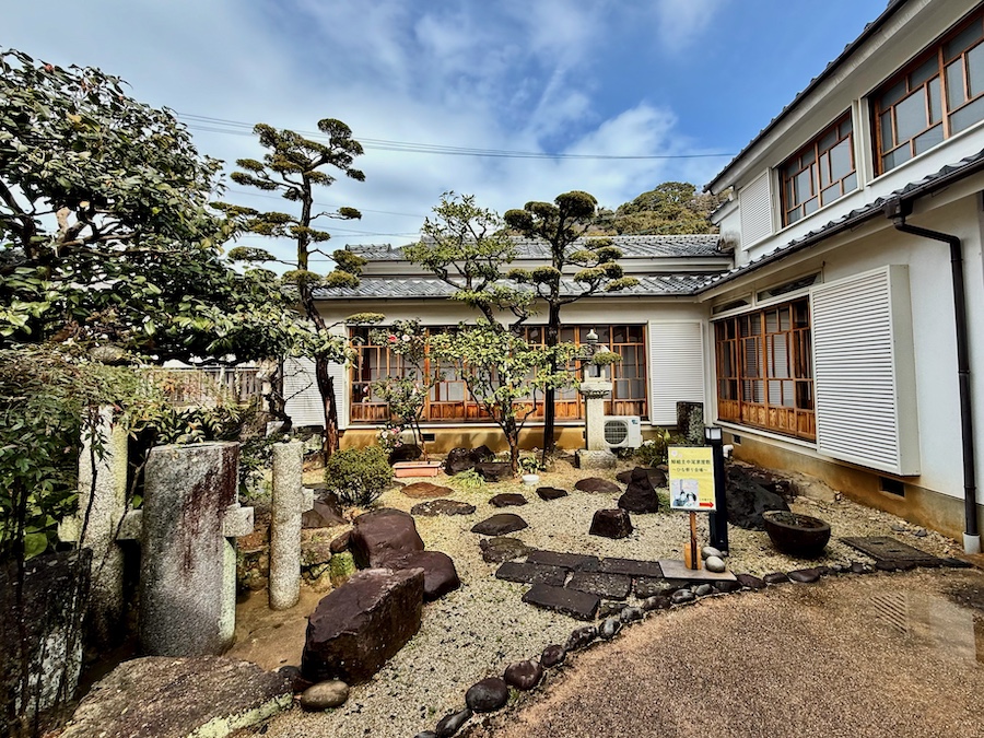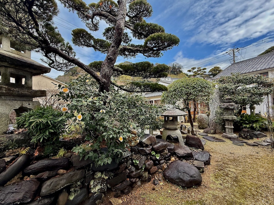 平成年代に入り、2004年に旧・呼子町の所有となり、解体修理などを経て一般公開が開始。かつてはこの主屋の北側に『観濤閣』という江戸時代中期建立のお座敷がもう一棟あったそうで、現在はそちらは解体され、新しい建物が再建されていますが(外観は主屋に合わせた白塗り)、その建物の前に庭園が広がります。