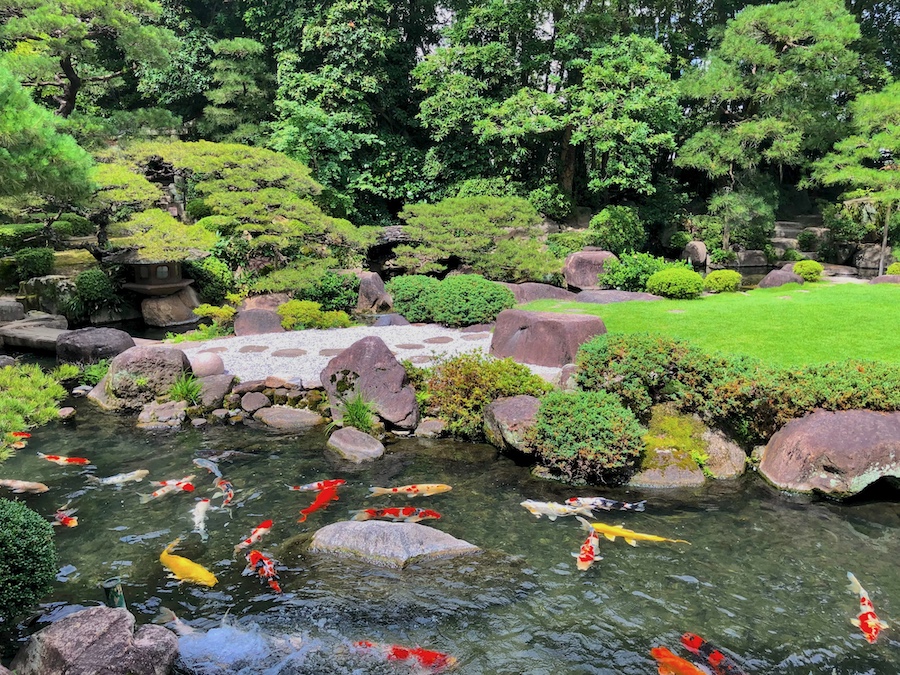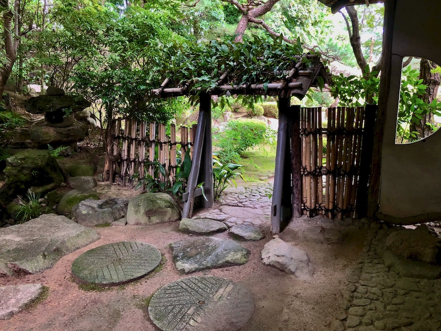 庭園入口の近く(石橋や司馬遼太郎の記したアカマツ)からが最も庭園の奥行きを感じるから、そこが主なビューポイントかな…と初めて訪れた頃は思っていたのですが、上記の歴史を踏まえるとこの庭園の最大のビューポイントは快活楼からということに。尚、快活楼2階からの俯瞰した写真は下記の「文化遺産オンライン」で見られます。