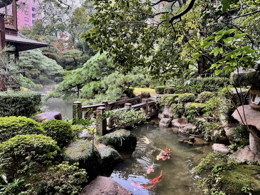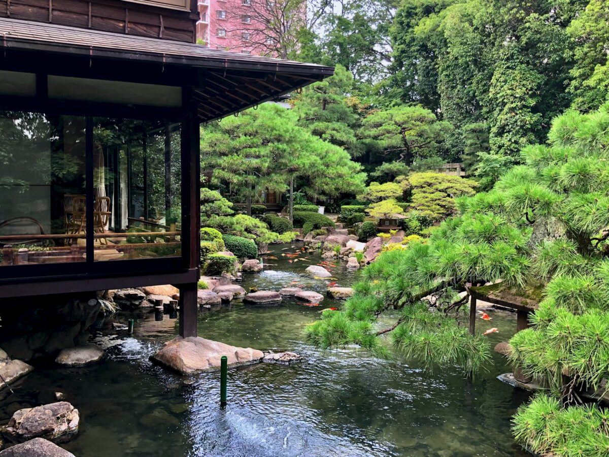 ちなみに駐車場側にも別の庭園があります(中には入れません)。こちらは、元々は松田屋ホテルに隣接していた旅館の庭園遺構で、こちらも実は江戸時代から残るという庭園。いつか宿泊して一晩松田屋のお庭を堪能したい――後世に残したい憧れの旅館の一つ!