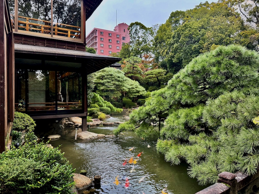 「松田屋ホテル」(まつだやほてる)は山口県山口市の中心部にある温泉地「湯田温泉」で江戸時代に創業し350年以上の歴史をほこる老舗旅館。幕末~明治維新期には三条実美/西郷隆盛/大久保利通/桂小五郎(木戸孝允)らも訪れ、そんな幕末の志士ゆかりの旧跡も残る日本庭園は2016年に国登録記念物(名勝地)の文化財庭園となりました。その作庭(改修)は近代京都を代表する作庭家・七代目小川治兵衛(植治)。