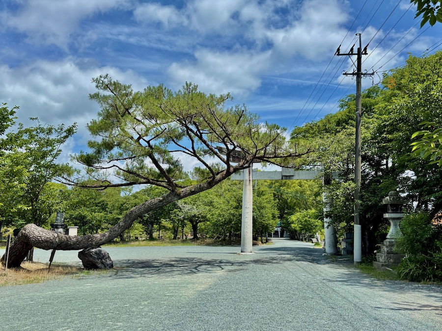 欄干橋を渡り、石鳥居をくぐってから長い参道が続く広い境内。お庭的なポイントは三箇所。