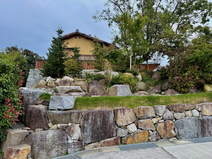 そんな歴史を感じさせる建築や石造物も素敵でこれだけで十分一見の価値あり!なのですが、この小間の奥の石垣。見た目でも迫力あるけれど、あえて「不自然に階段の様に登れるようになっている」所…庭園の裏ルートの様になっている所もすごく面白い…山登り好きな人や子供さんは喜んで昇り降りしたくなるはず。