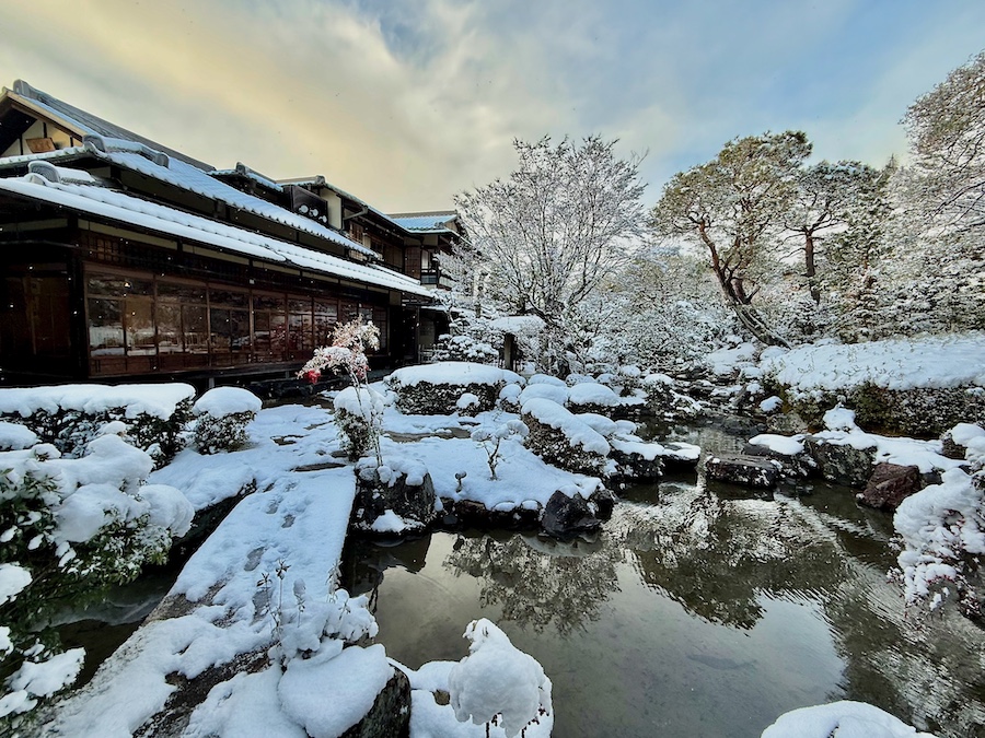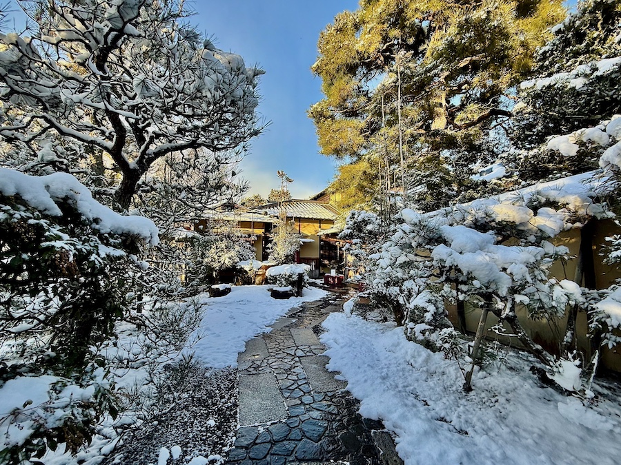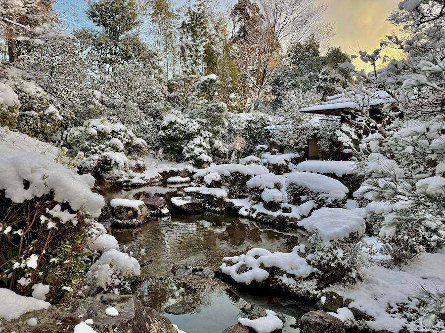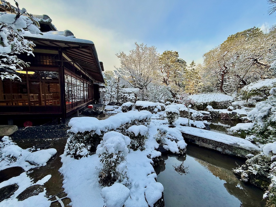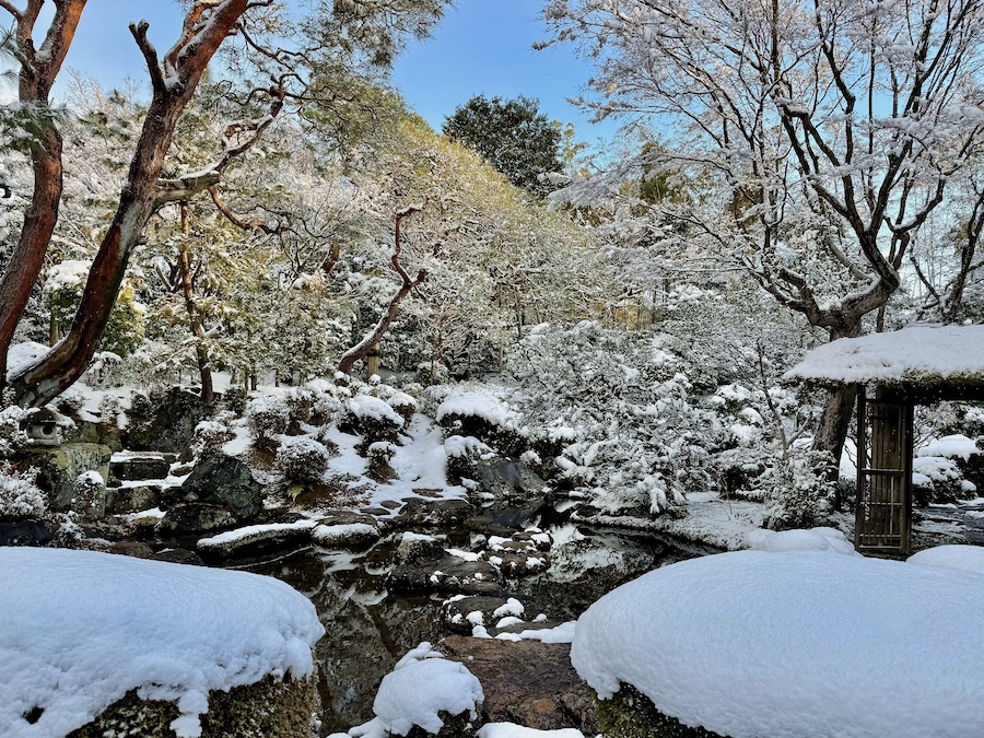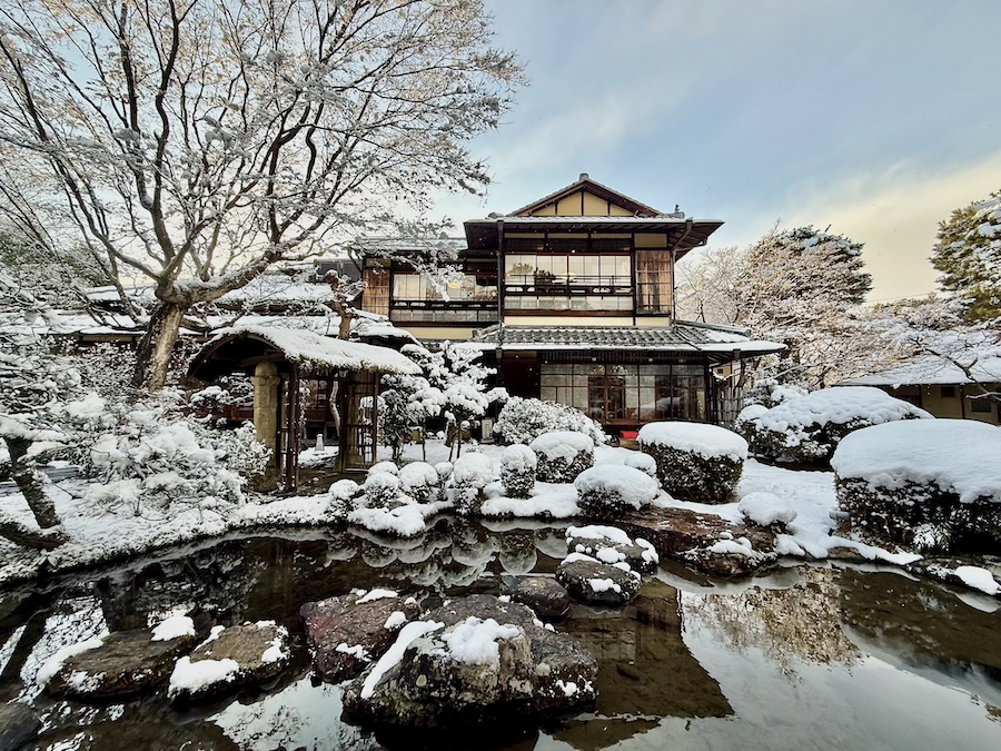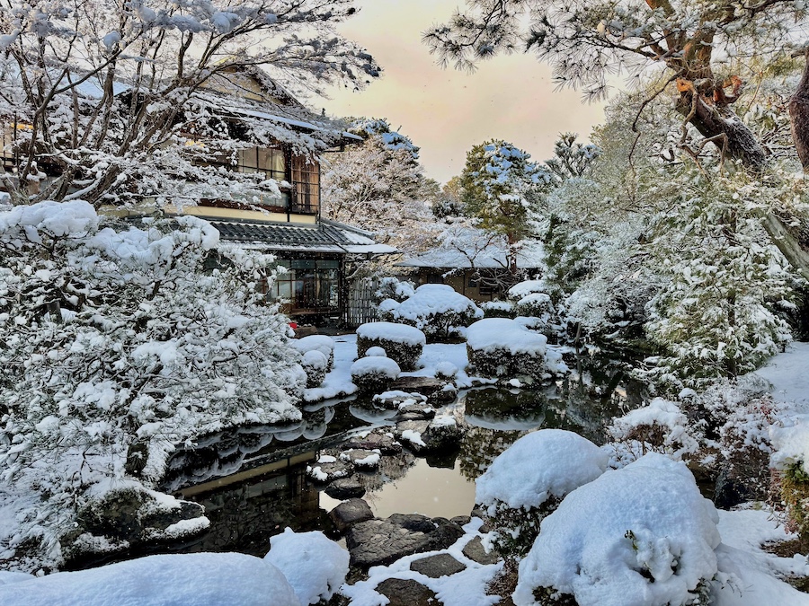 南禅寺界隈別荘群の傑作庭園の雪景色…近代京都を代表する庭師・七代目小川治兵衛(植治)と武者小路千家の茶人・木津聿斎が作庭の庭園で特別な時間を。
