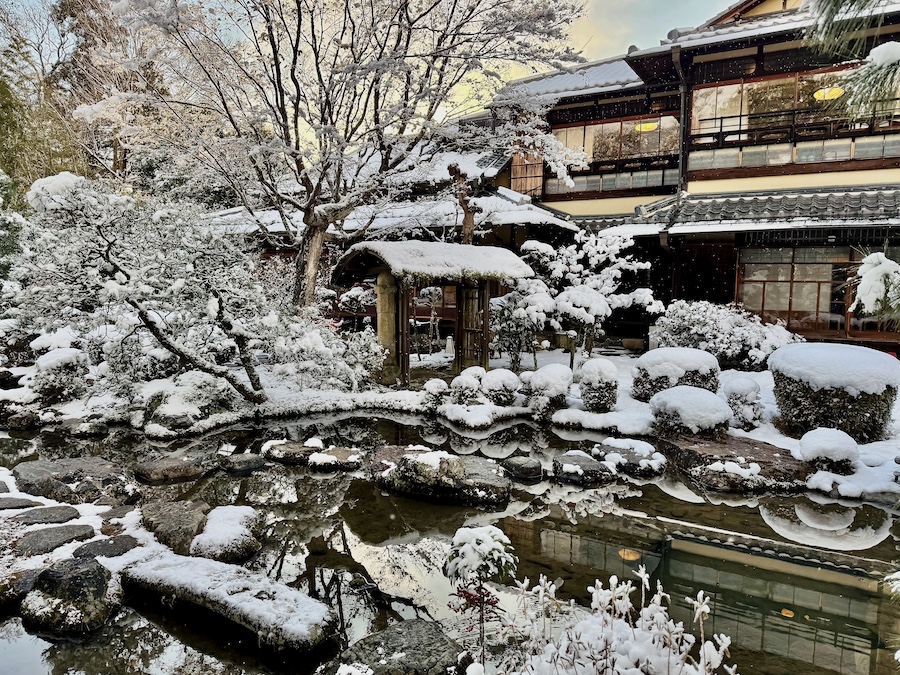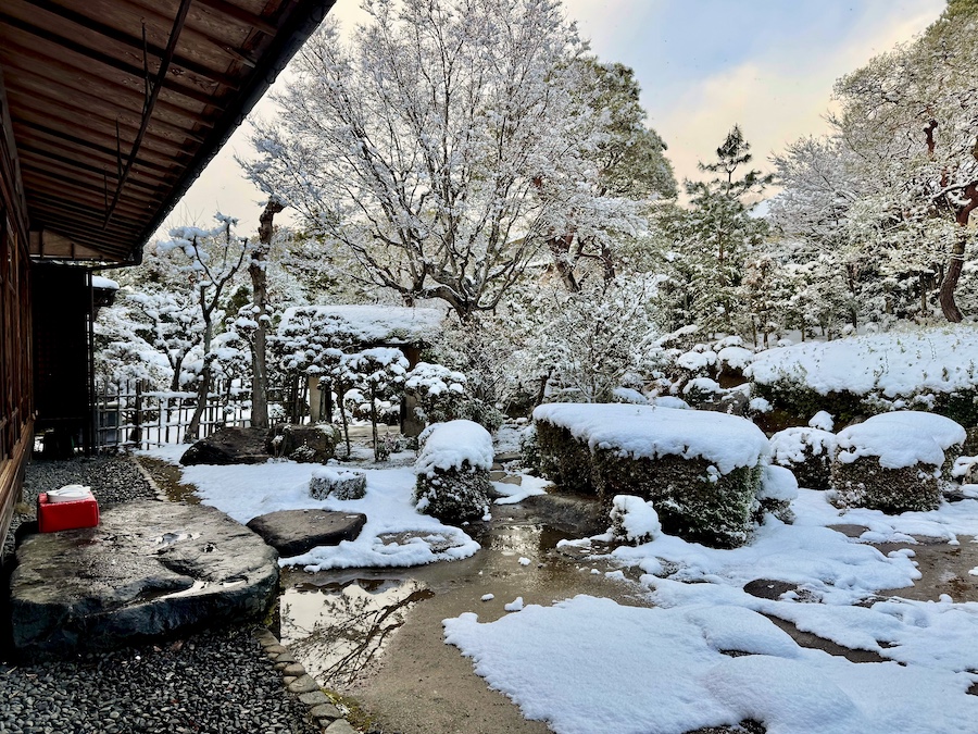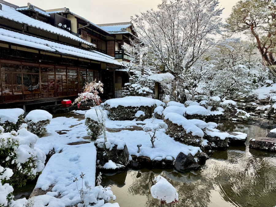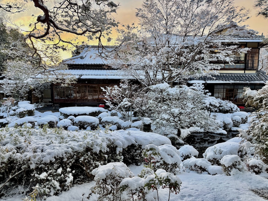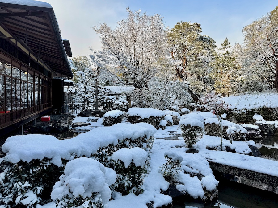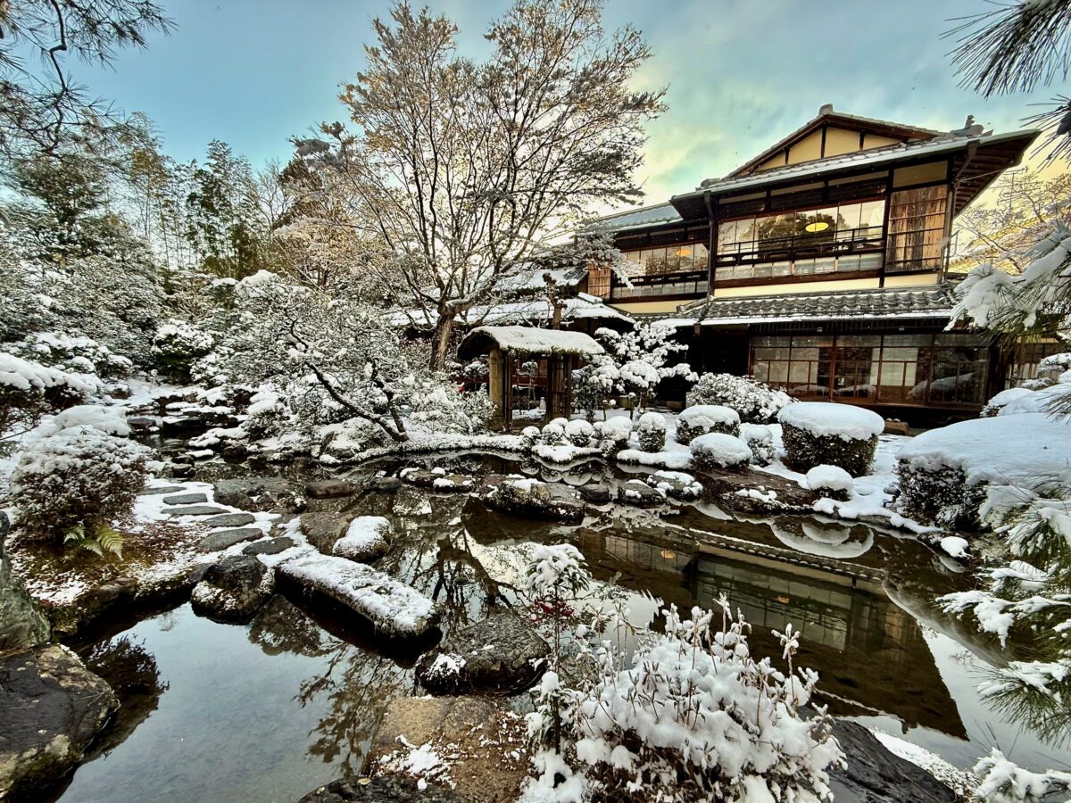 南禅寺界隈別荘群の傑作庭園の雪景色…近代京都を代表する庭師・七代目小川治兵衛(植治)と武者小路千家の茶人・木津聿斎が作庭の庭園で特別な時間を。