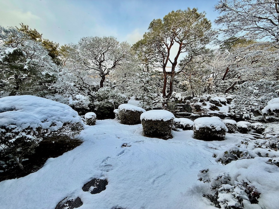 ここでは2026年2月の庭園の雪景色を紹介!>>緑の季節の庭園の姿はこちら。