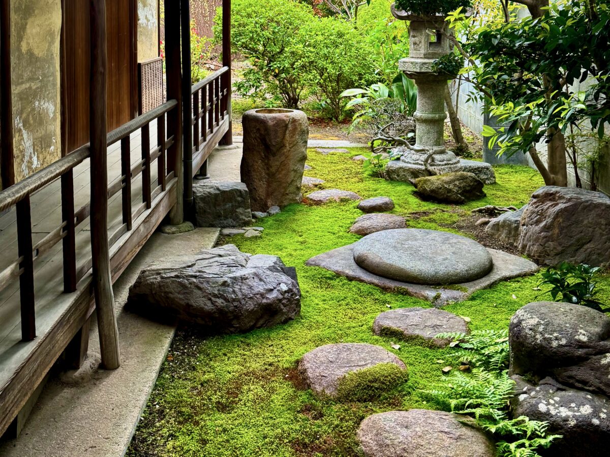 東海道の脇往還・美濃路「起宿」の脇本陣に昭和初期に作庭された苔の美しい庭園。令和元年、国登録名勝に。