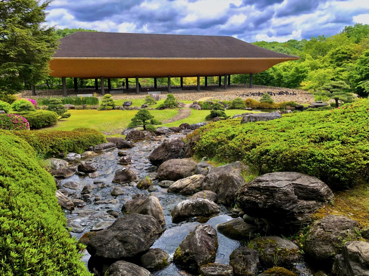 世界的建築家・谷口吉生の代表作とも名高い美術館…その茶室も氏の設計による現代数寄屋建築の傑作で、苔と紅葉の庭園が美しい“童子苑”。