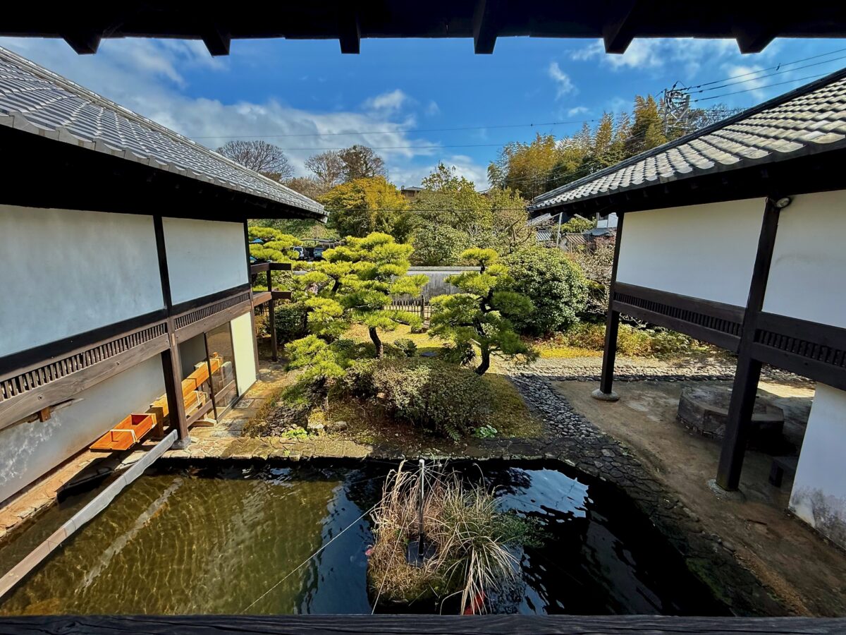 国の重要伝統的建造物群保存地区の町並み“大山町所子”散策の休憩にも。国登録有形文化財の屋敷に平成年代に作庭された枯山水庭園。