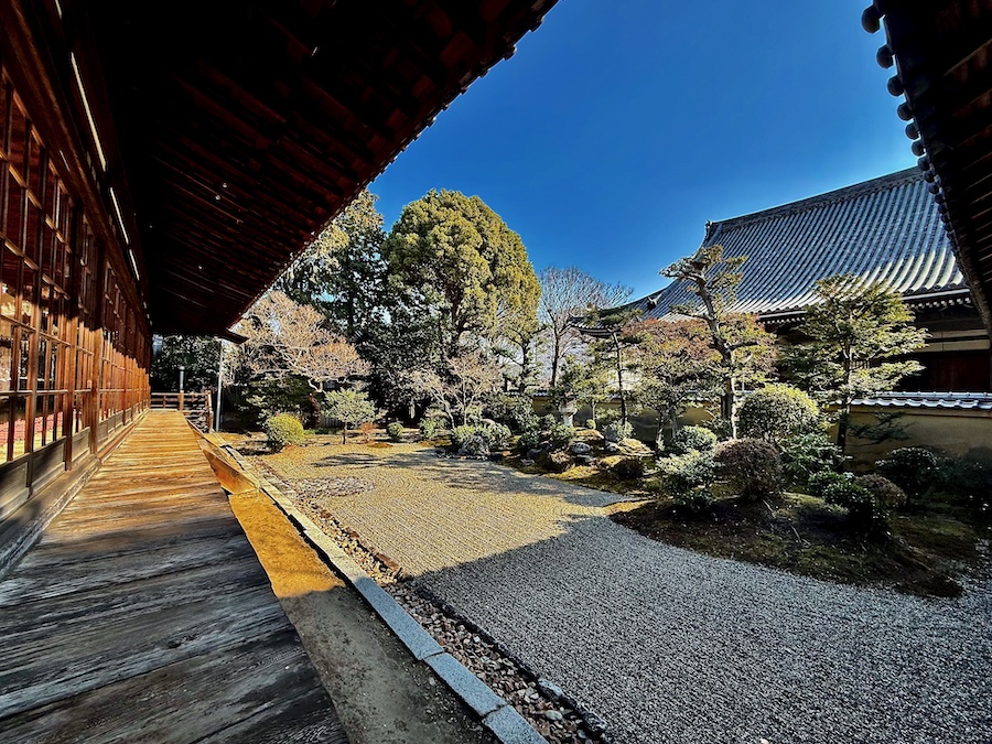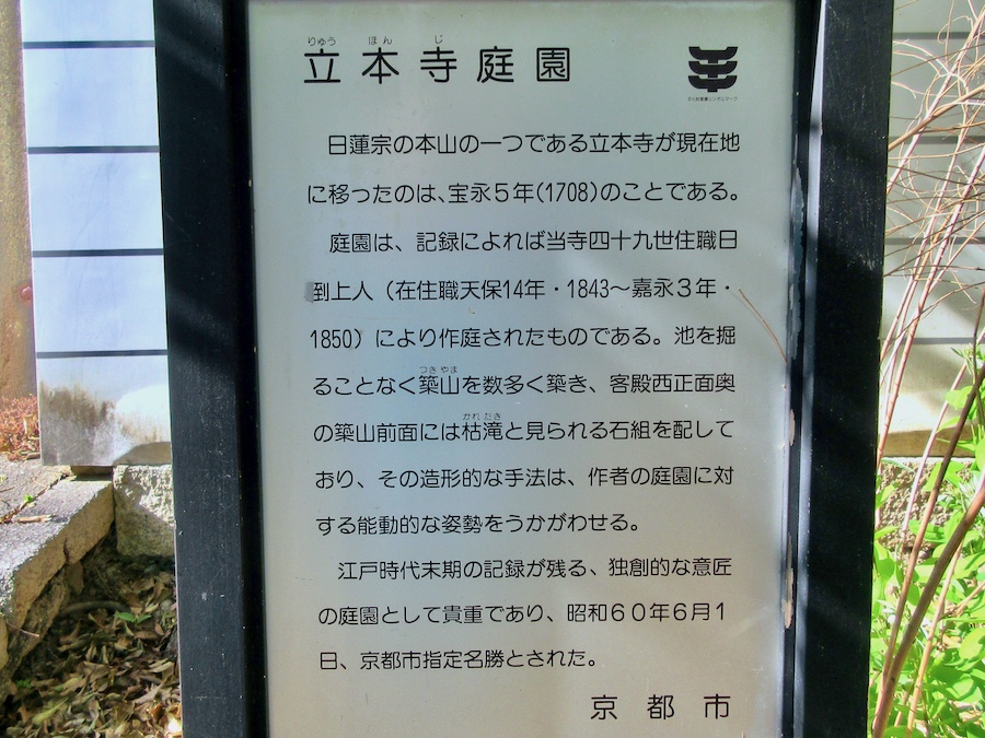 1728年(享保13年)に再建された客殿“園林堂”の西側・南側に面する形で京都市指定名勝の枯山水庭園“龍華苑”(龍華庭園)があります。作庭年代は京都市の文化財解説では建物よりは遅く(新しく)、江戸時代後期の1843年(天保14年)〜1850年(嘉永3年)に第50世の日到上人の手により作庭。(お寺の解説文には「移転した頃からの約300年の歴史ある庭」とも。)