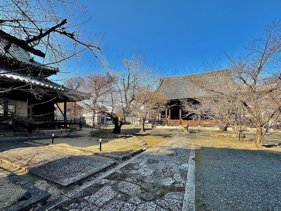京都・西陣に建つ“日蓮宗京都八本山”の一つ。江戸時代末期作庭の大きな築山が独特な枯山水庭園は京都市指定名勝。