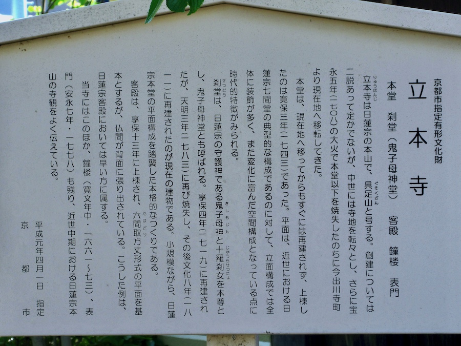 かくかくしかじかあって立本寺として分かれ、現在地に移ったのは江戸時代中期の宝永の大火(1708年)の後。