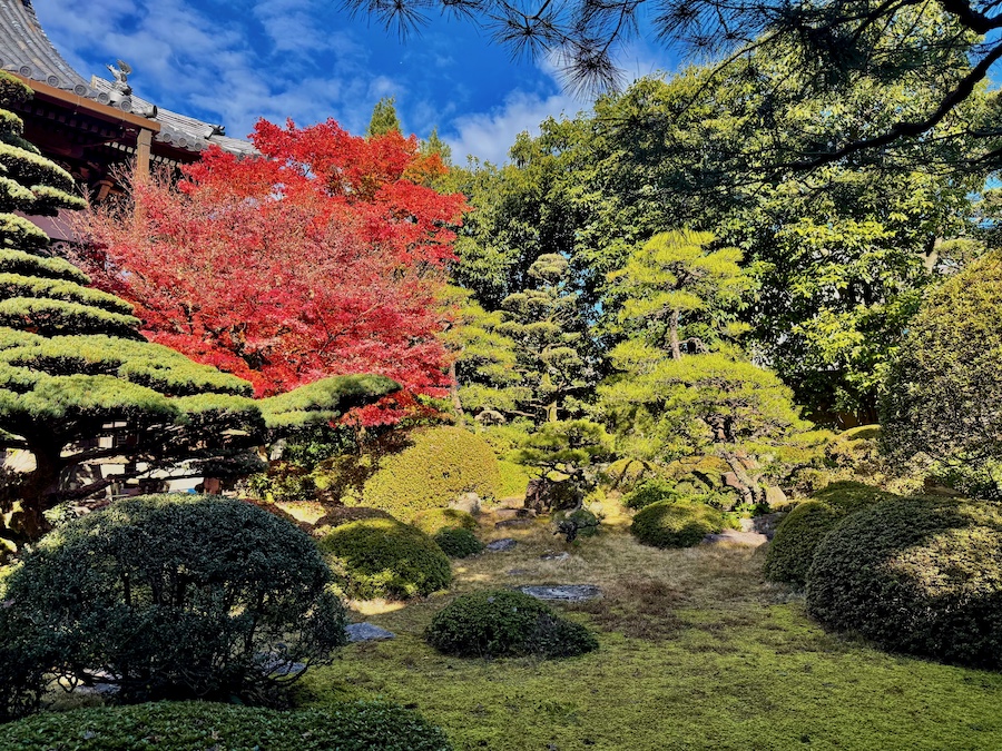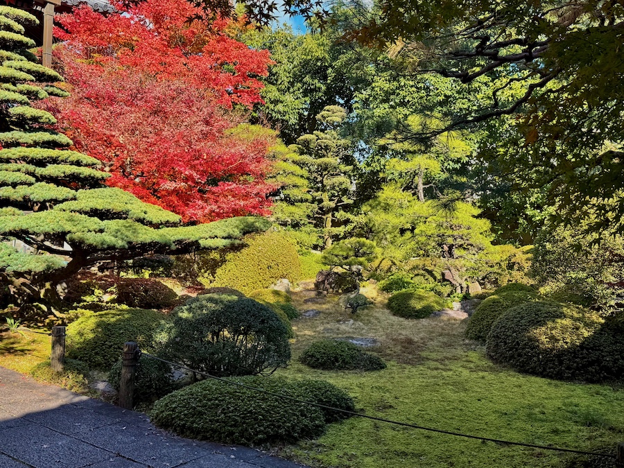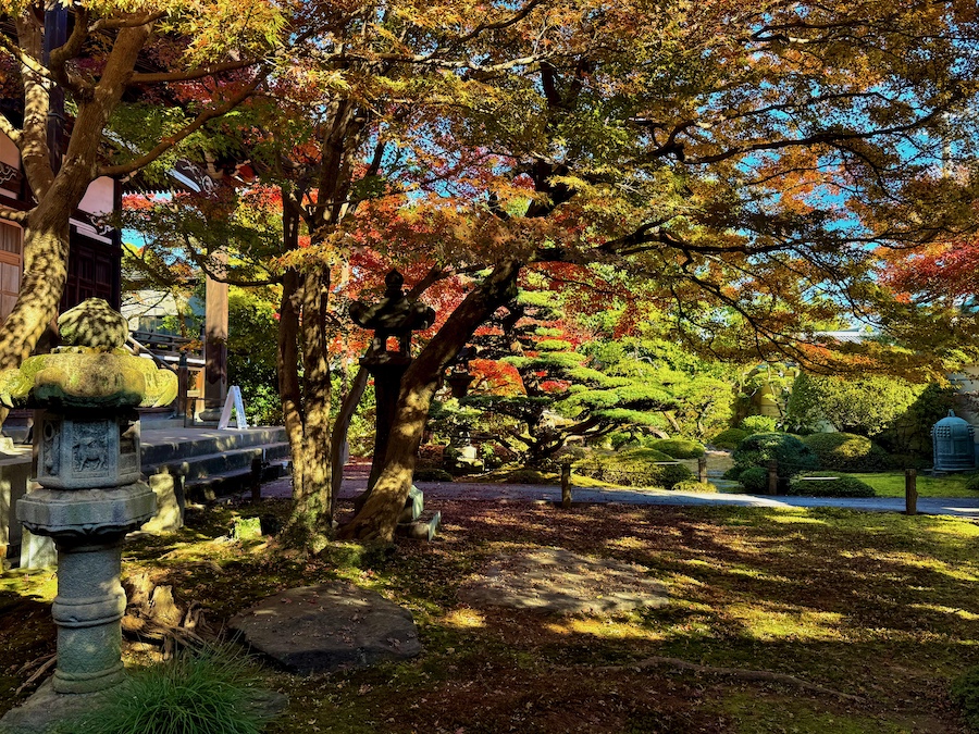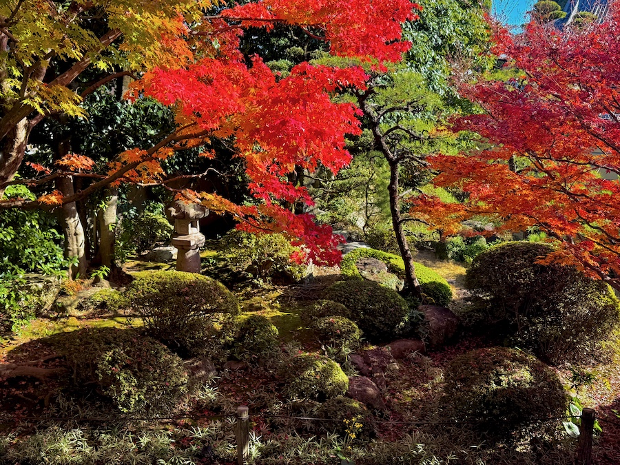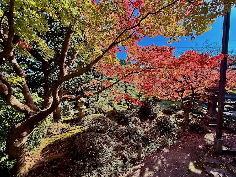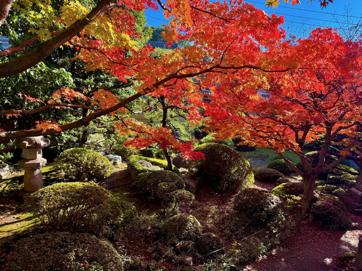 氏の生きた時代を考慮すると、この誓行寺のお庭は本堂が再建された頃の作庭。九年庵と比べればこじんまりとしていますが、それでも作庭から100年以上経過している歴史ある貴重なお庭!氏の“自然流”と称された作風はこのお寺の名前から“誓行寺”とも言われ、なのでこのお庭は氏の「原点」のお庭とも言えます。そして紅葉もお見事!市内の方も旅行の方もぜひ立ち寄ってみて。