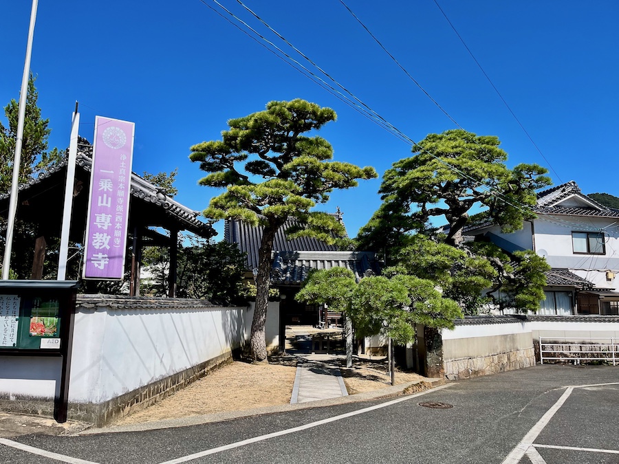 「一乗山 専教寺」(せんきょうじ)は国選定の重要伝統的建造物群保存地区「矢掛町矢掛宿」の町並みにある浄土真宗本願寺派の寺院。境内にある「臥龍松」が矢掛町指定重要文化財(天然記念物)。その傍らには池泉鑑賞式庭園も。