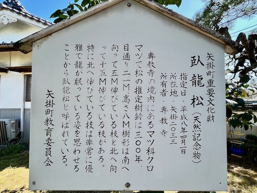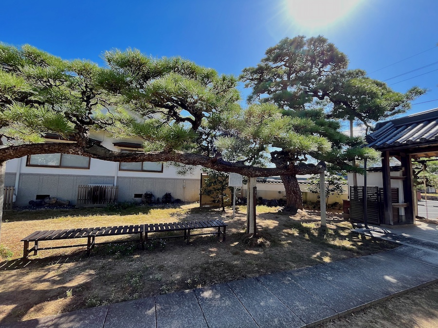 お寺の場所は創建時から変わらず、矢掛町指定重要文化財(天然記念物)のクロマツ「臥龍松」は推定樹齢300~400年とされるので、おおよそ創建と共に植樹されたマツということに。その名が付けられる通り、龍の胴体のように北側へ伸びた枝はなんと20メートル!