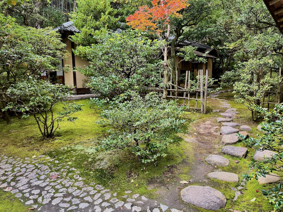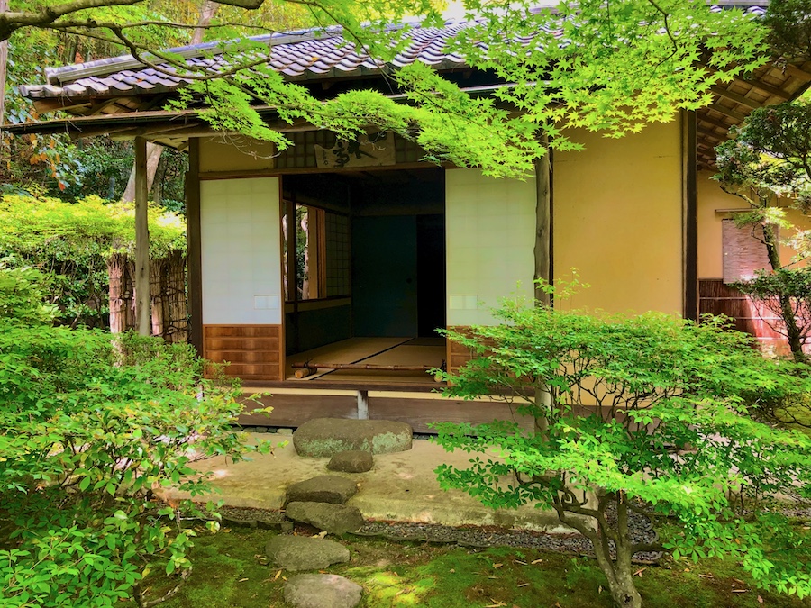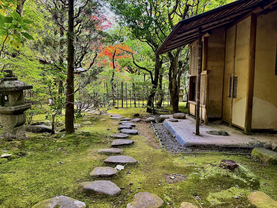 現代アートも楽しめる“日本庭園ミュージアム”内のもう一つの茶庭…京都の茶室研究の第一人者・中村昌生により再現された千利休の名席と、苔の美しい露地。