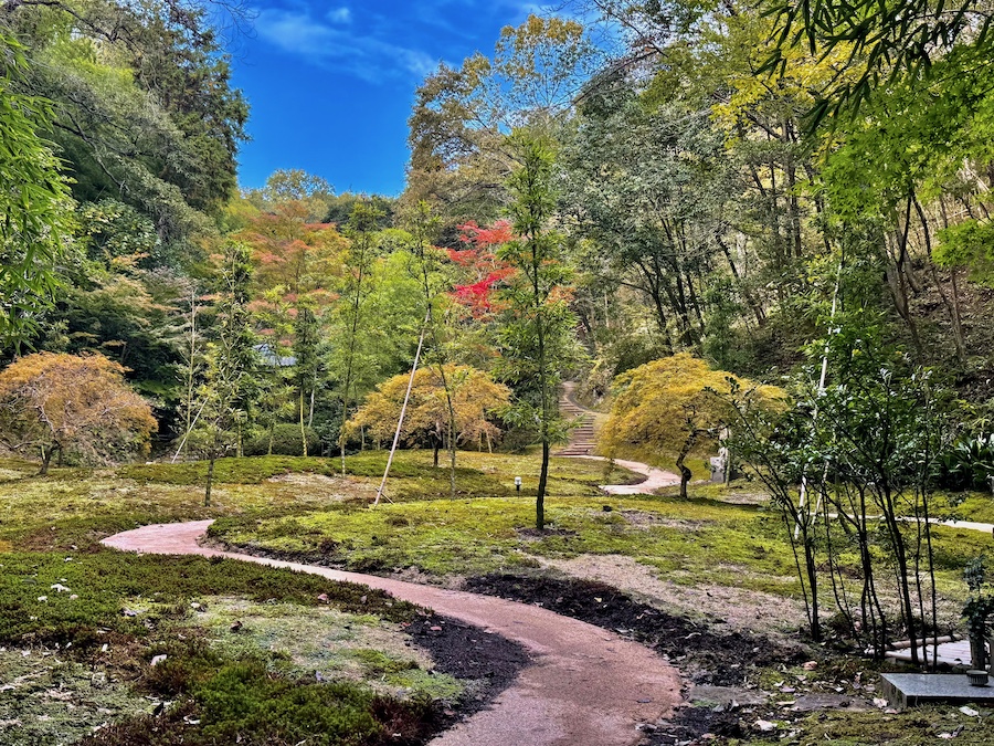 何度も訪れていますが、2025年に開催された『ひろしま国際建築祭』の展示を目的に久々に訪れたので秋の様子を紹介。冒頭の一文の通り、広大な境内に複数の庭園と建築作品と見所が沢山!それぞれページを分けて紹介します。このページでは園内中盤に位置するもう一つの茶室『一来亭』とその茶庭・露地について。
