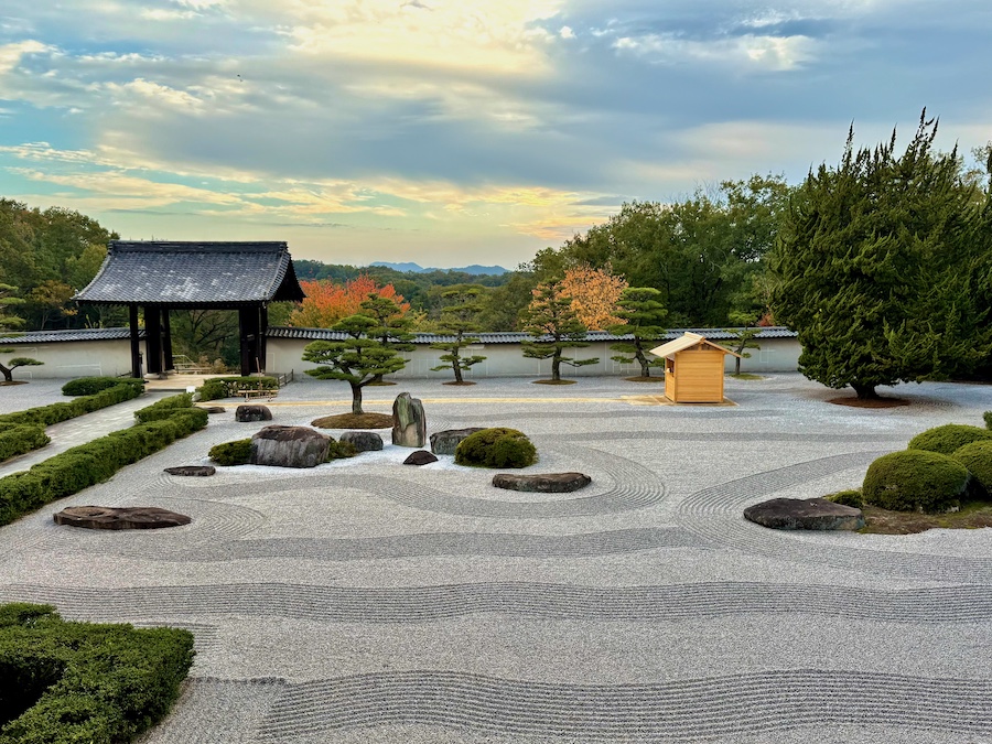 “禅と庭のミュージアム”の最奥地にある壮大な枯山水庭園。“足立美術館”で知られる名造園家・中根金作の作庭。