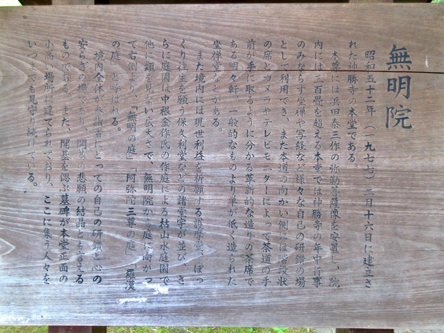 茶室“一来亭”の脇の階段、または鐘楼門からの長い石段を登った先にあるのが神勝寺の本堂“無明院”。建立されたのは創建から10年が経過した後の1977年(昭和52年)。
