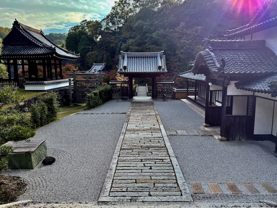池に架かる龍背橋の正面にあるのが通常非公開の国際禅道場…2025年のひろしま国際建築祭ではこちらの空間も作品展示の為に特別公開されました。尚、国際禅道場の更にその奥にある開基堂「天勝院」にも枯山水庭園があるそう(こちらは建築祭でも非公開)。