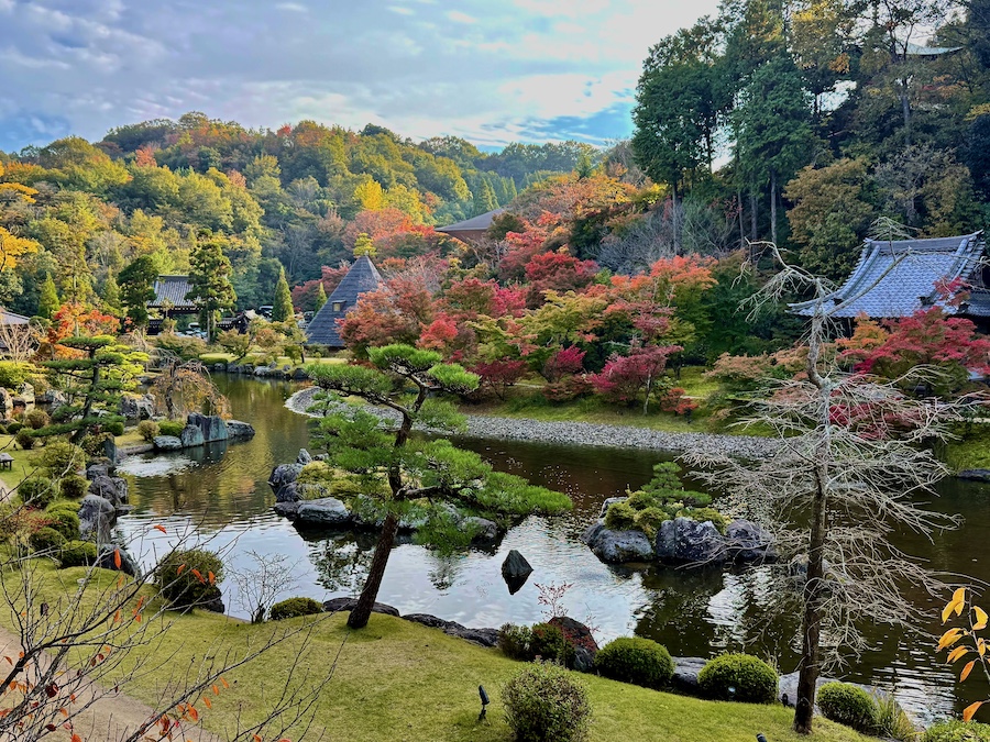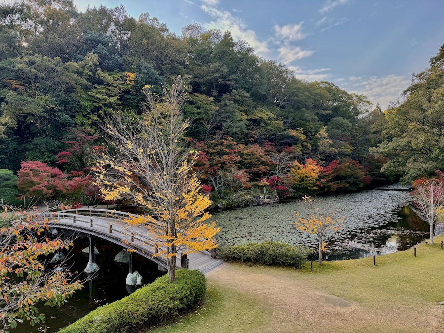 何度も訪れていますが、2025年に開催された『ひろしま国際建築祭』の展示を目的に久々に訪れたので秋の様子を紹介。冒頭の一文の通り、広大な境内に複数の庭園と建築作品と見所が沢山!それぞれページを分けて紹介します。このページでは入園して最初に関する日本庭園『賞心庭』について。