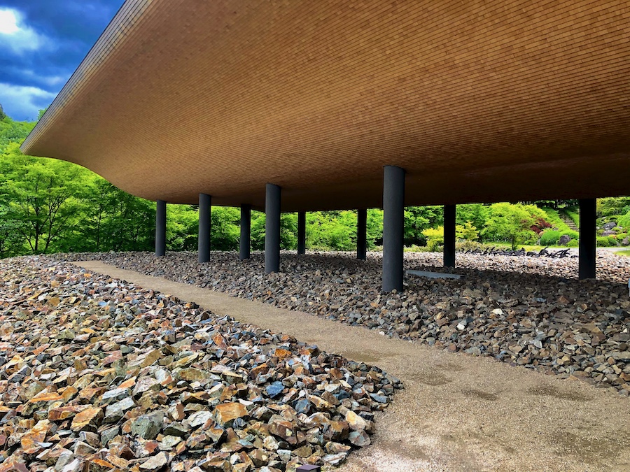 神勝寺の開基や現在の施主の本業にもつながる“船”をモチーフとした曲線を描きながら、屋根はこけら葺き/そして木材で覆われた外観…が寺院建築であることも感じさせ、またこれまでにない“和モダン”といった雰囲気も醸します。(ちなみに竣工から10年近くが経過して、徐々にその木材も経年で変色してきているのもまた良い〜!)