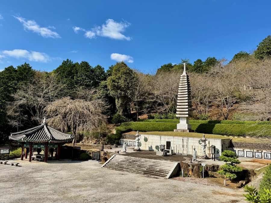 高麗人、朝鮮半島から渡来した方々ゆかりの寺院ということで、本堂から多宝塔への途中には「在日韓民族慰霊塔」が鎮座し、またその周辺は「桜の丘浄苑」と名付けられ、多くの桜が植樹されています。歴史の話も色々書いたけれど、本当に規模も大きくきれいに保たれた庭園…!東京の方もぜひ足を伸ばしてみて。