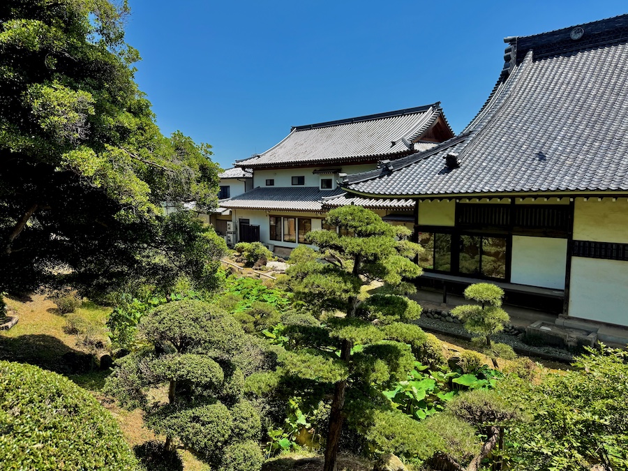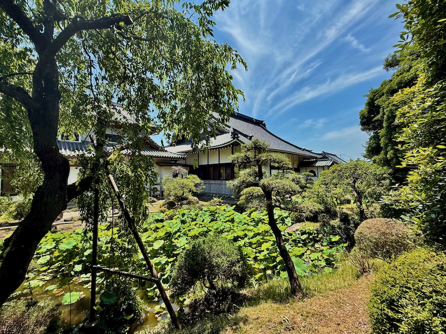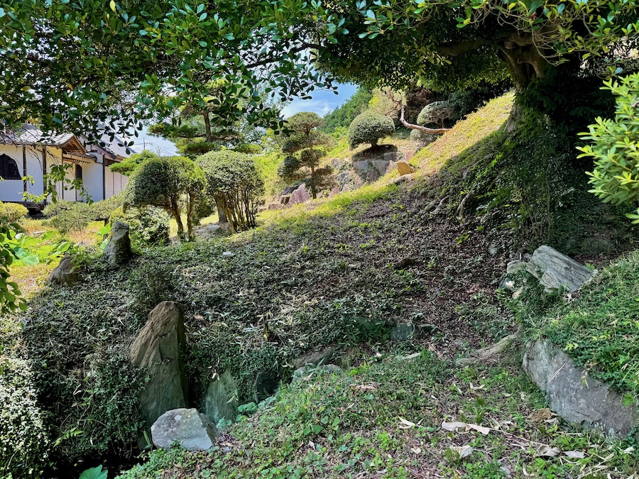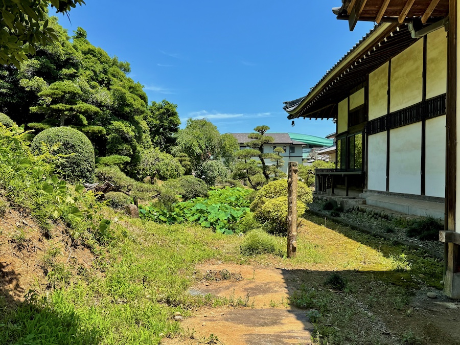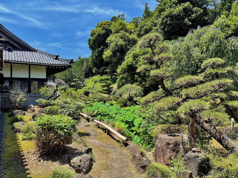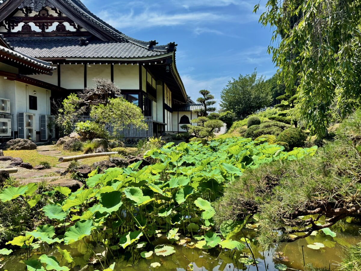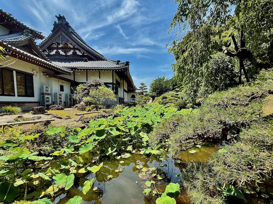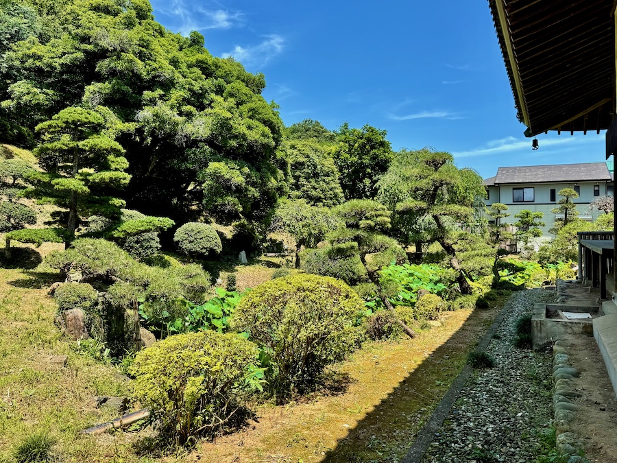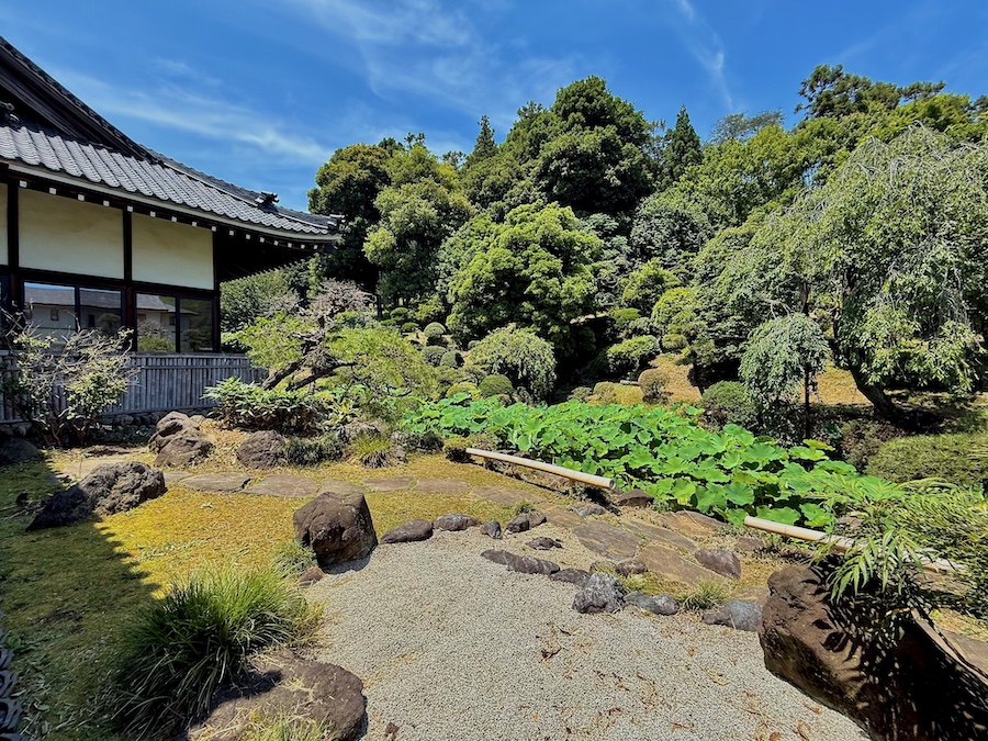 本堂・客殿の裏に深谷市指定文化財の庭園があります(ちなみに山門付近にも池庭がありますが、そちらは現代に入ってからのもの)。上杉氏と縁が深かった室町時代の作庭と推定されていて——だとすると、この庭園は実は北関東随一の古庭園!そんな貴重なお庭ですが、「地元の方も散歩に訪れるので」と、自由に拝観できます。