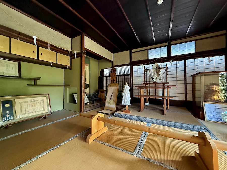 手がけた大工棟梁「大重」は近江五個荘を拠点に近代京都、滋賀で活躍された宮大工・市田重郎兵衛。京都『東本願寺』の大門、『知恩院』の阿弥陀堂、『仏光寺』の阿弥陀堂(本堂)が代表作として知られるそう。そしてこの御在所、当初は京都に向けた往路でのみ滞在予定だったところ、政府側の予定変更によって東京までの復路でも滞在されたとか。その後「幸生殿」と名付けられ、現在はその名の額が掲げられています。