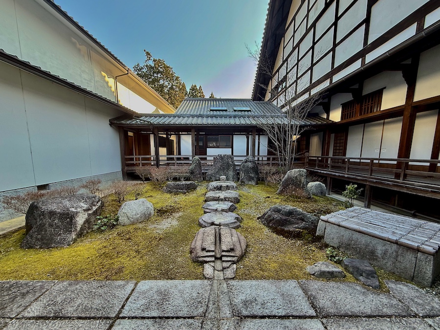 南庭が信仰の世界を表す古典的な雰囲気…である一方で、こちらは円柱型の石材で星座、“北斗七星”を表現した斬新な枯山水庭園。後述しますが、東京の美術館での個展のタイトルにもなりました。