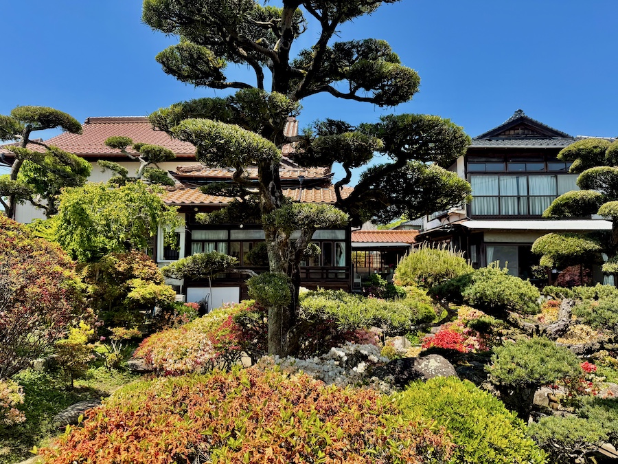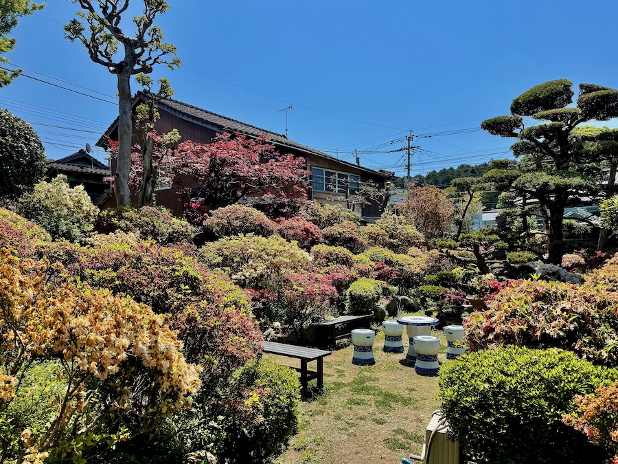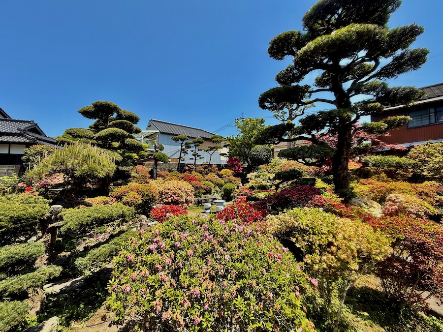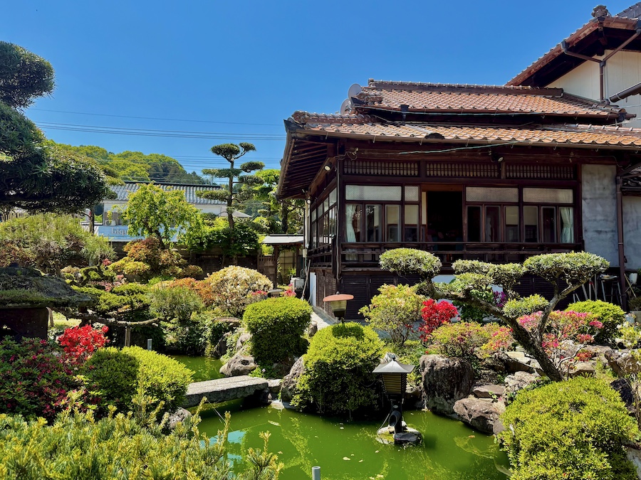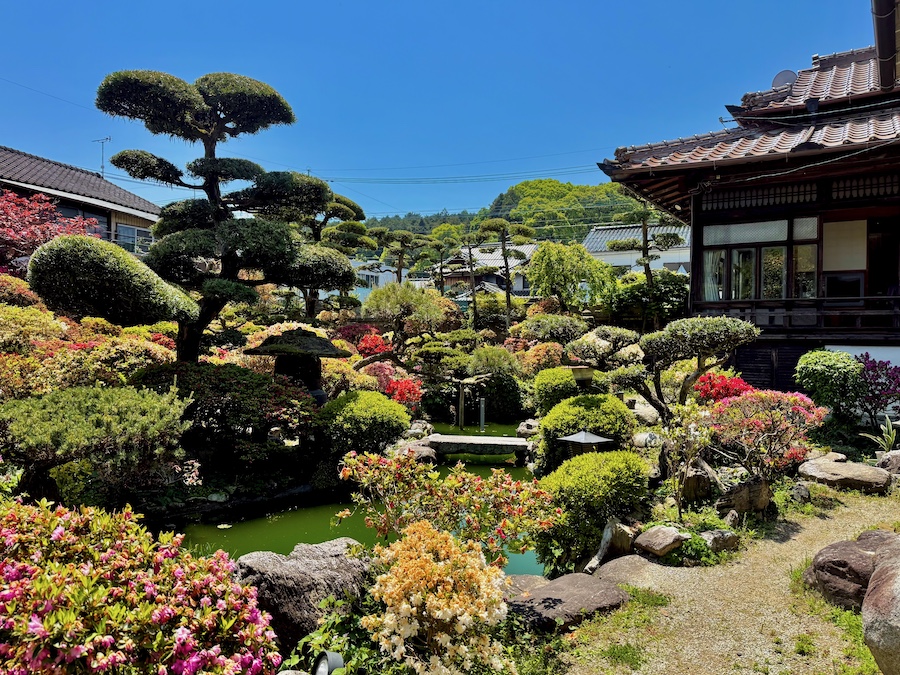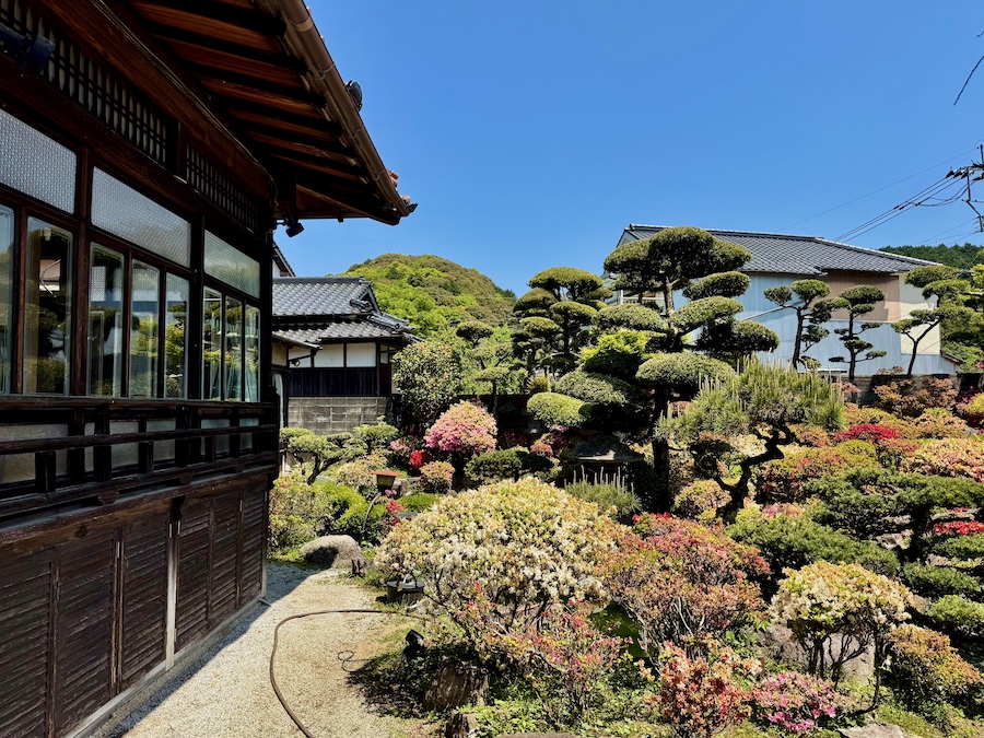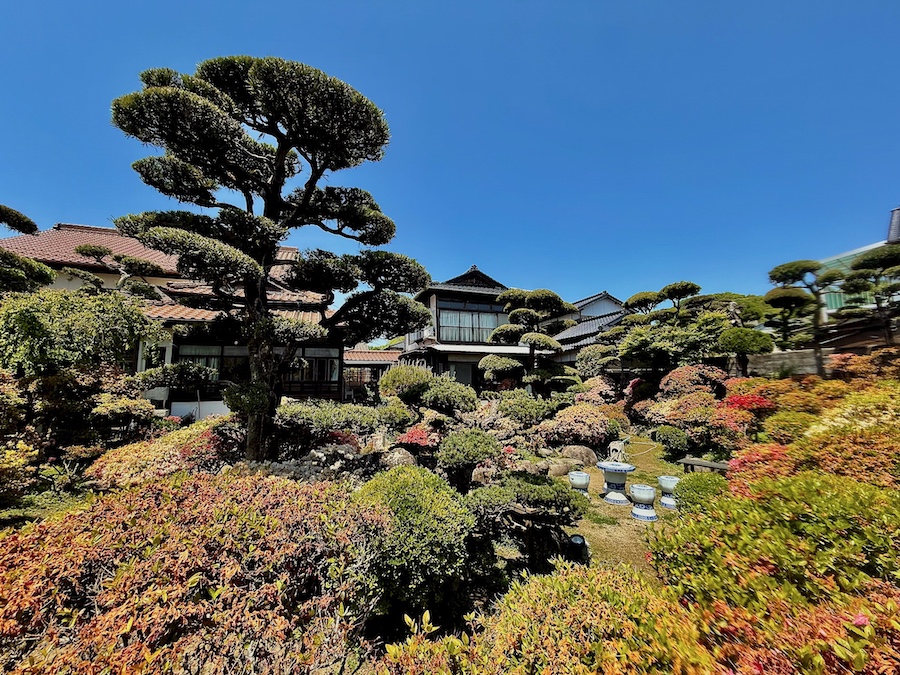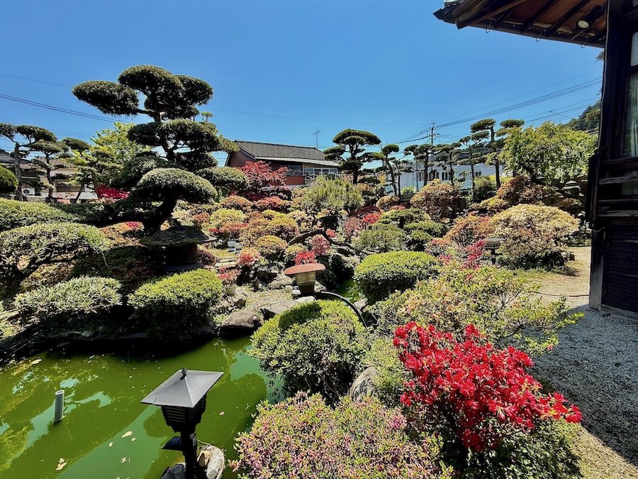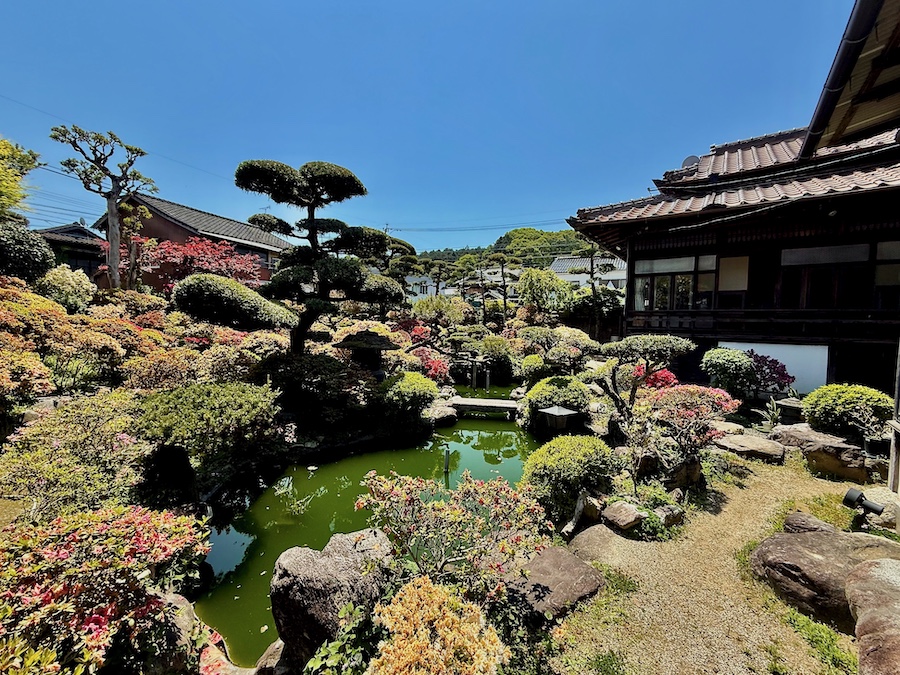 何名の方からオススメいただいていた福岡の『常磐館』、2025年春に初めて訪れました。旅館としての宿泊営業は2025年現在休業していますが、予約制にてお食事の営業と、ツツジの花が見頃の季節(おおよそ4月中旬~下旬)には庭園が特別開放されます。特にツツジの季節はお食事の予約は地元の方々ですぐ埋まるという、まさに「ローカル名庭園」。