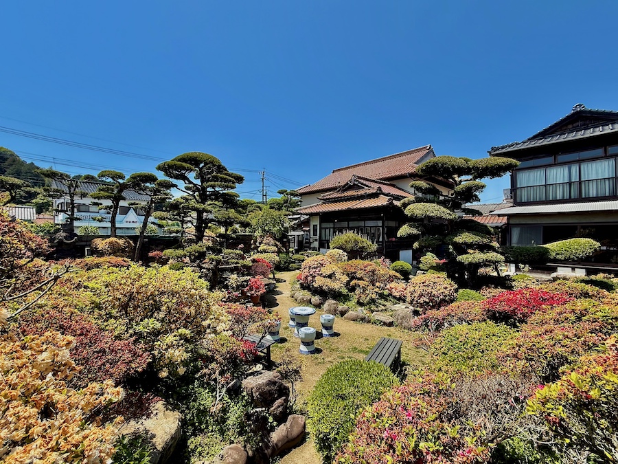 福岡/筑豊で明治時代に創業の老舗旅館の近代和風建築とツツジの名所庭園。4月のツツジが見頃の季節には庭園が特別公開!