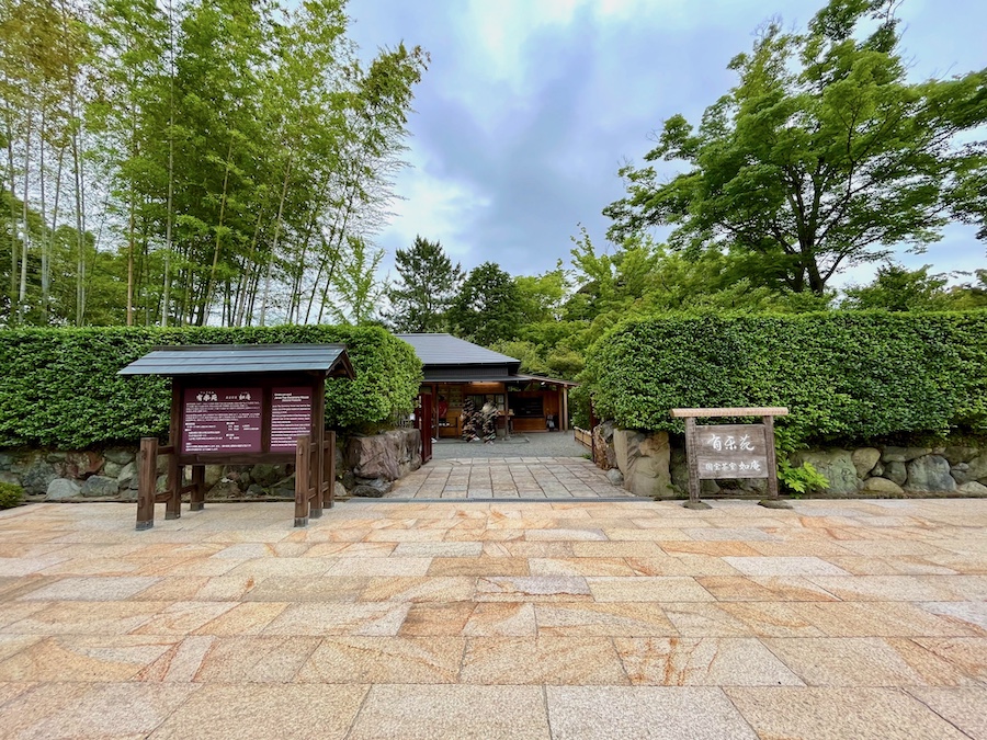 如庵・正伝院を中心とした回遊式亭園の中には他にも歴史的な建造物や石造物が見られるのですが、実は?この2棟だけでなく三井家大磯別邸から移築されているものも多い…(園内西部にある徳源寺唐門、正伝院書院の入り口になっている含翠門&萱門)。中でも「徳源院唐門」は奈良県大宇陀町の織田家の菩提寺にあった山門、「岩栖門」は室町時代に京都の細川満元の屋敷『岩栖院』に建てられた唐門と伝わり、これらも文化財であってもおかしくない歴史がある。
