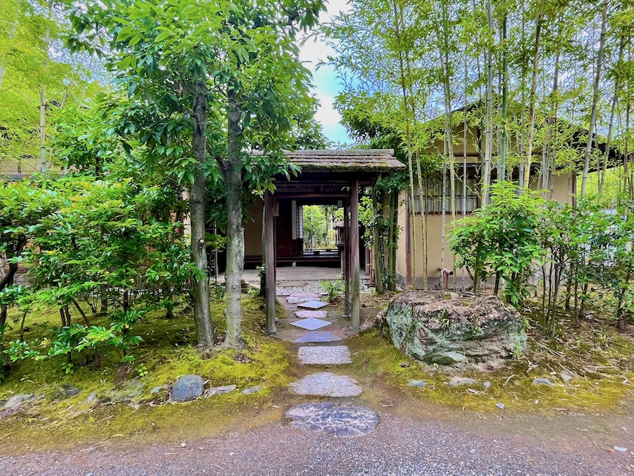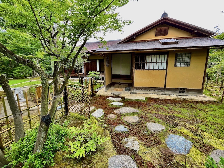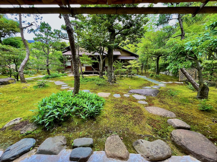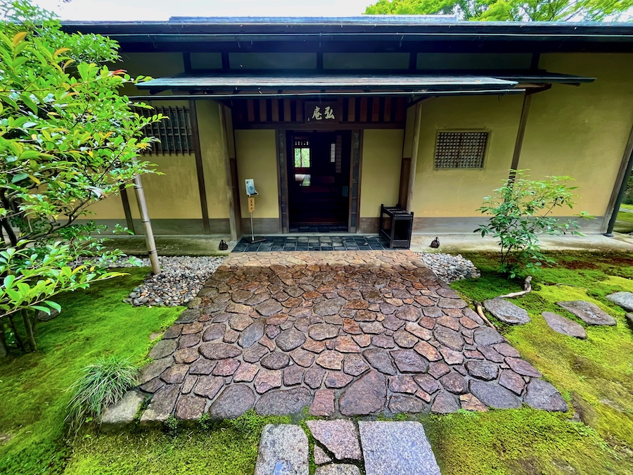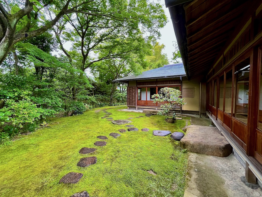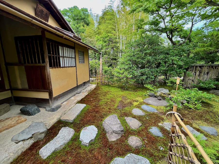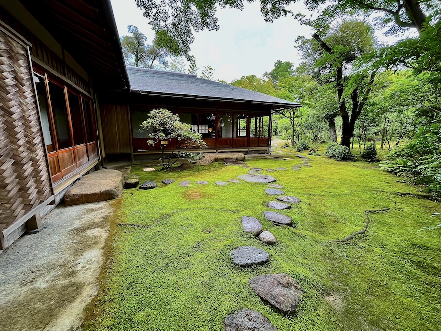文化財として鑑賞する対象の如庵・正伝院などに対して、実際に茶会をするために新たに建築されたもの。600円でお茶・お菓子を一服いただくことができます。この周辺の露地庭が苔が美しくて素晴らしい!