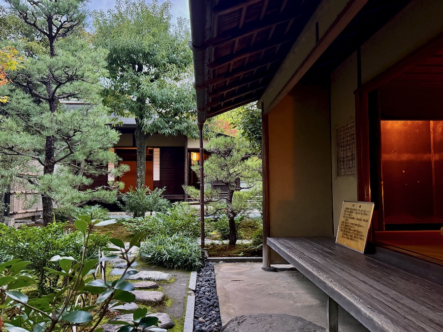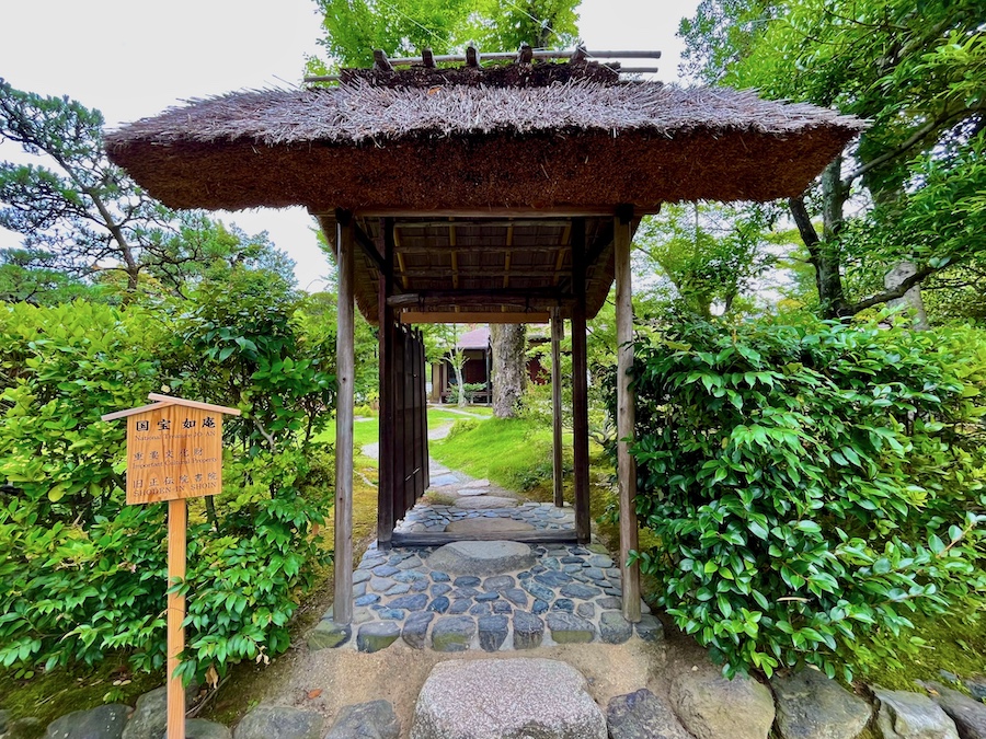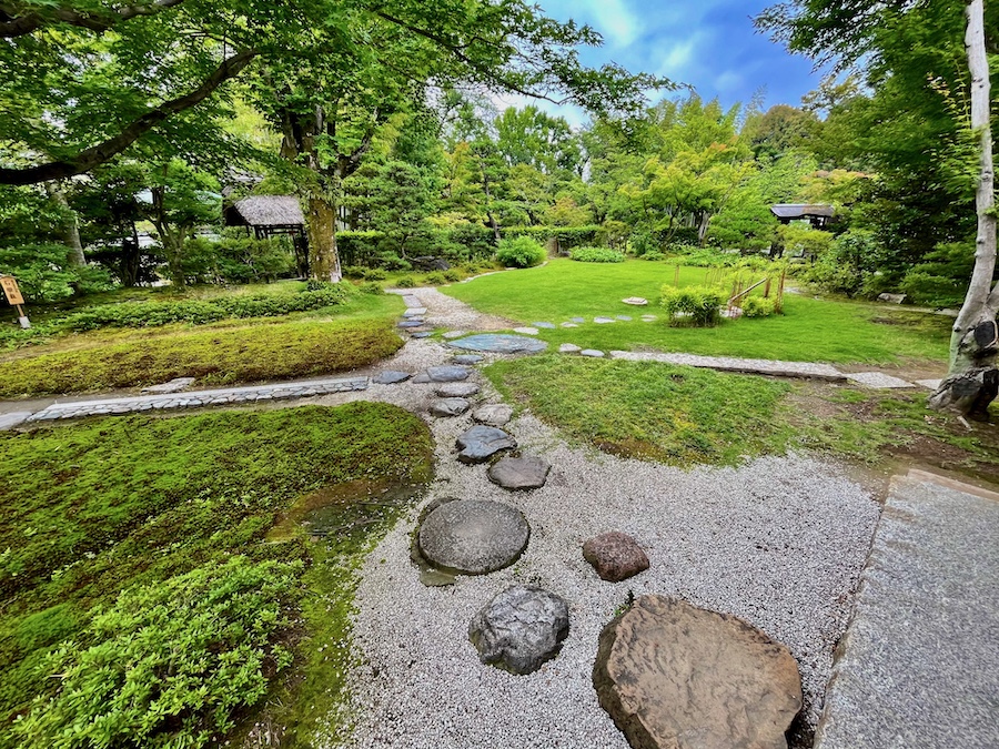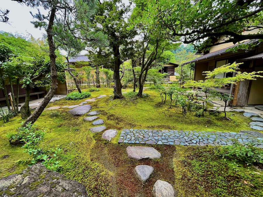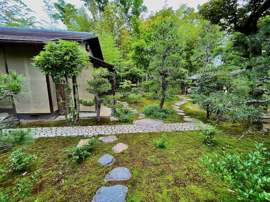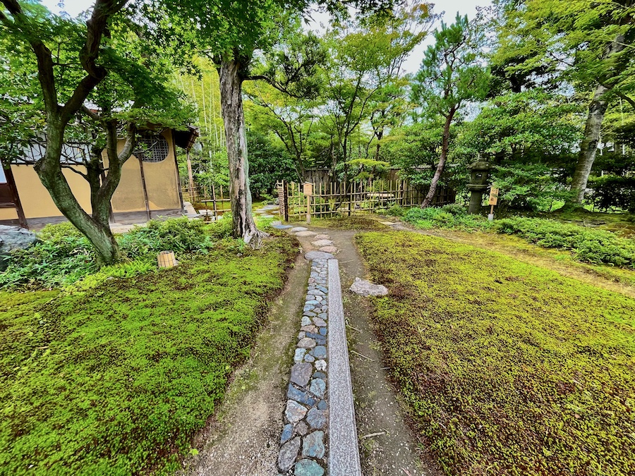 文化財として鑑賞する対象の如庵・正伝院などに対して、実際に茶会をするために新たに建築されたもの。600円でお茶・お菓子を一服いただくことができます。この周辺の露地庭が苔が美しくて素晴らしい!
