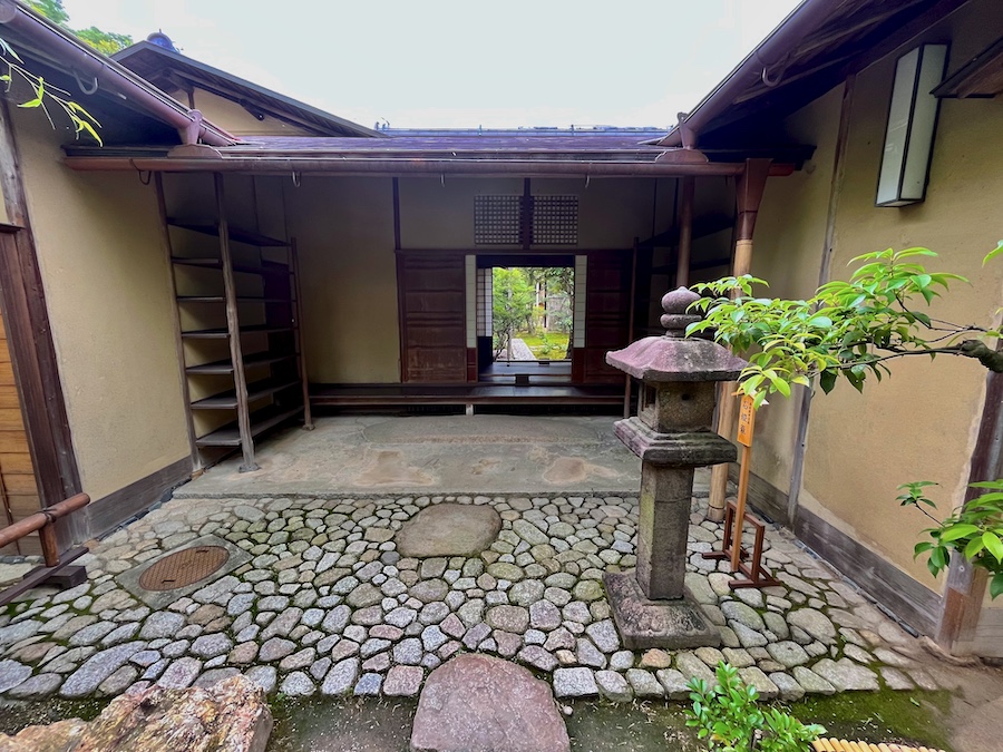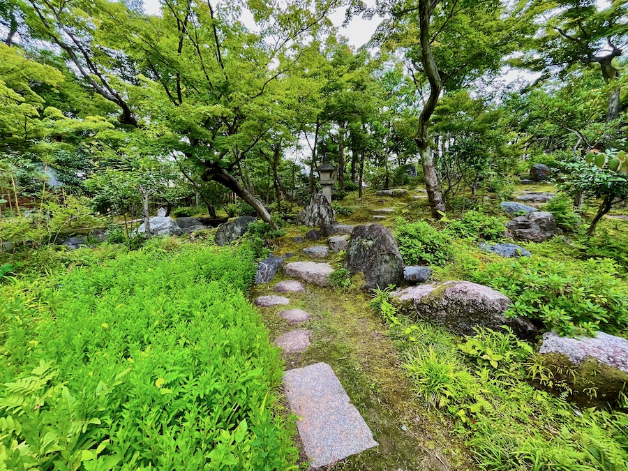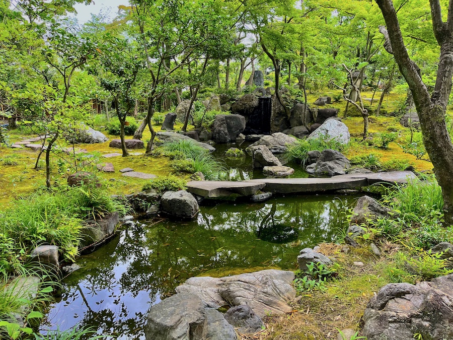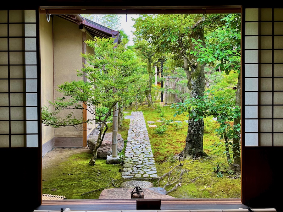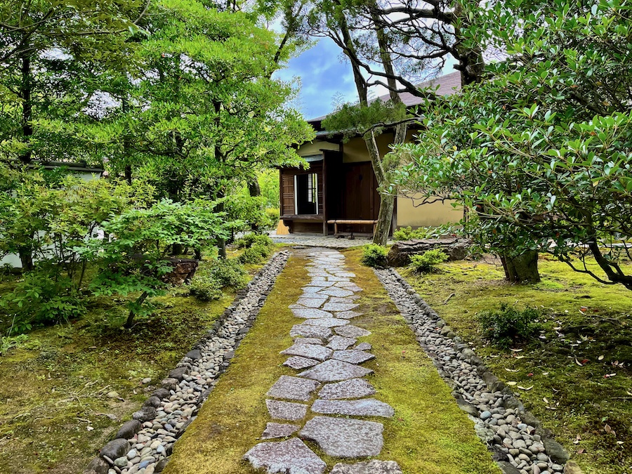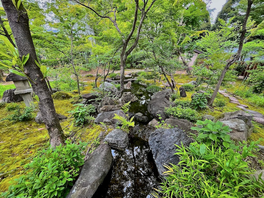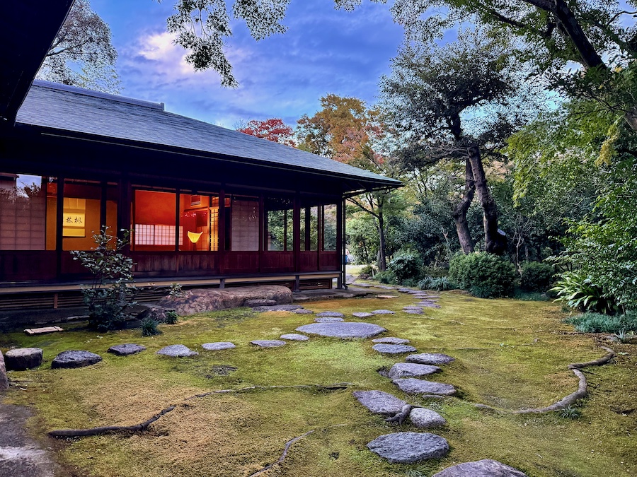 文化財として鑑賞する対象の如庵・正伝院などに対して、実際に茶会をするために新たに建築されたもの。600円でお茶・お菓子を一服いただくことができます。この周辺の露地庭が苔が美しくて素晴らしい!