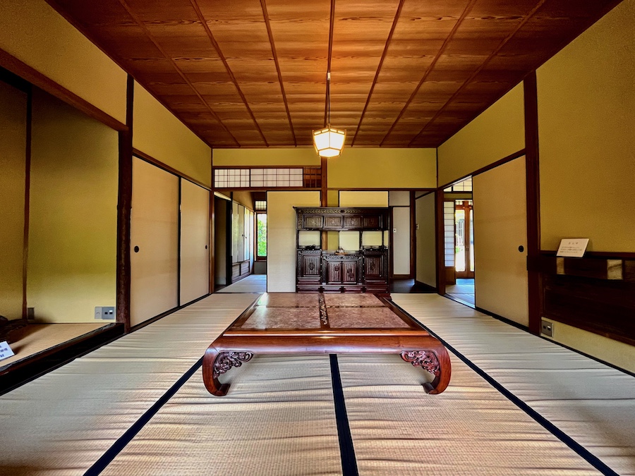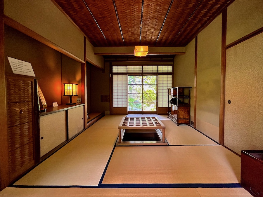 …なんだけど、1階の“離れ”的に奥に位置する茶の間はそりゃもう網代天井の素敵な数寄屋建築。この時代には珍しい掘りごたつも。素晴らしいな〜。最初の施主には「見積の際に最高額を提示した業者に施工させた」という逸話も…。