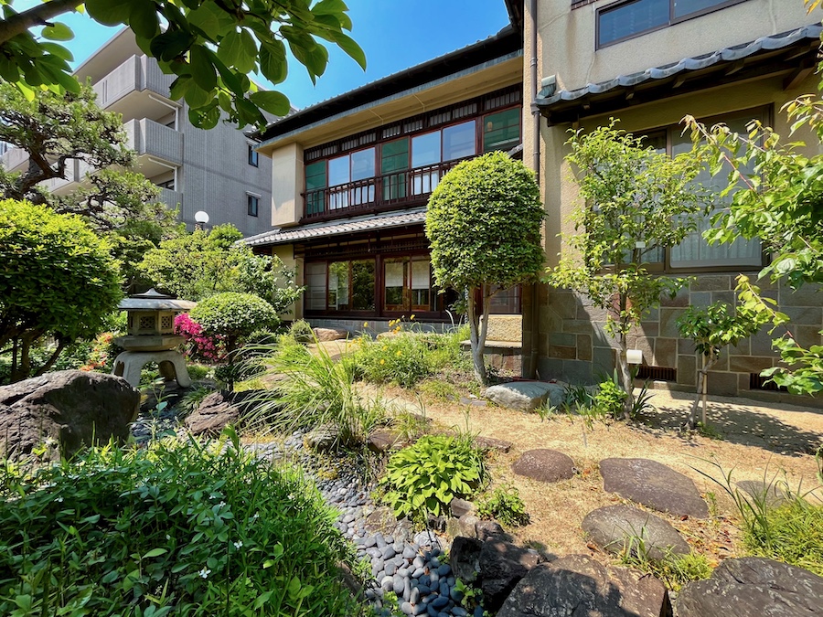 阪神間モダニズムmeets松平不昧。岡田孝男設計の和洋折衷の近代建築に、関西ではレアな?不昧流茶室と出雲流庭園。国登録有形文化財。