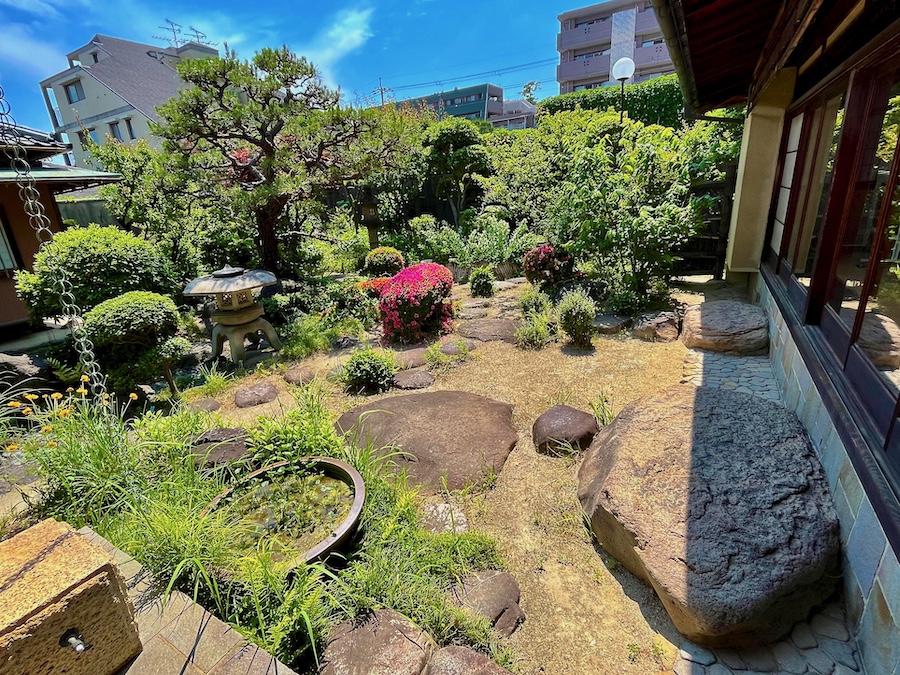 当サイトでは「“庭園”と言うと京都が注目されるけど、阪神間の邸宅の庭園もすごい!」「阪神間モダニズムの邸宅は建築が注目されがちだけど、庭園も見応えある!」的なことを書いてきているのですが、この邸宅にも近代日本庭園が残ります。そして関西では貴重な“不昧流茶室”も!