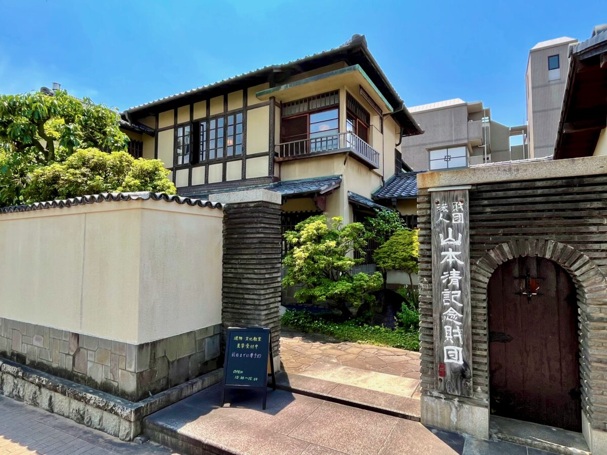 「旧山本家住宅」(きゅうやまもとけじゅうたく)は兵庫県西宮市の夙川沿いにある“阪神間モダニズム”の邸宅で、設計は茶室研究家・岡田孝男。「旧山本家住宅(山本清記念財団会館)」として主屋・表門及び塀・門衛所・蔵・茶室の5棟が国登録有形文化財。ひょうごの近代住宅100選。現在は『一般財団法人 山本清記念財団』により予約制で一般公開および各種の文化教室(イベント)が開催されています。